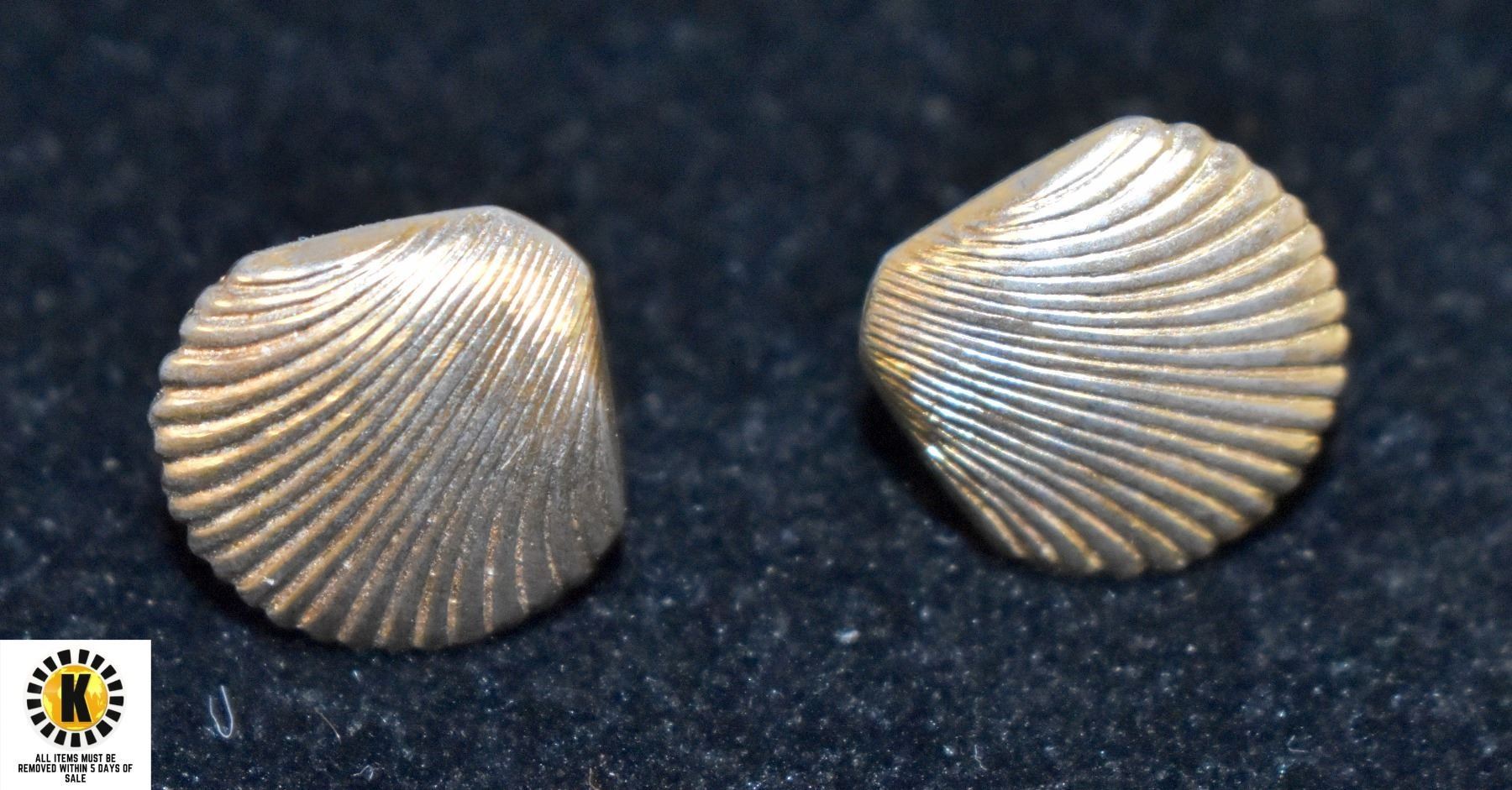 VINTAGE GOLD TONE CLAMSHELL EARRINGS