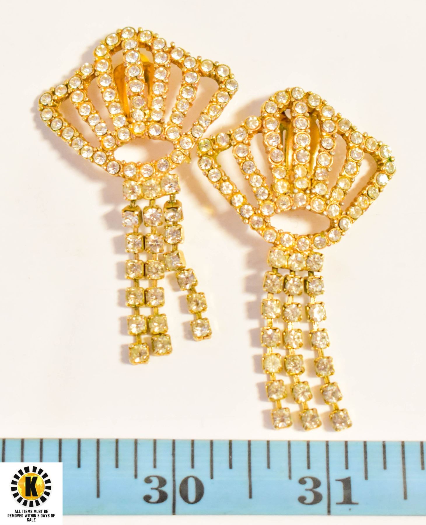 CLIP ON EARRINGS FROM THE 50'S, HAS 3 ROWS OF DROP CRYSTALS. JEWELLERY