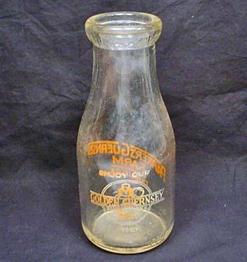 VINTAGE GOLDEN GUERNSEY ADVERTISING GLASS MILK BOTTLE - Parker's Guernsey Farm, Dublin, GA. Approx. 7" tall