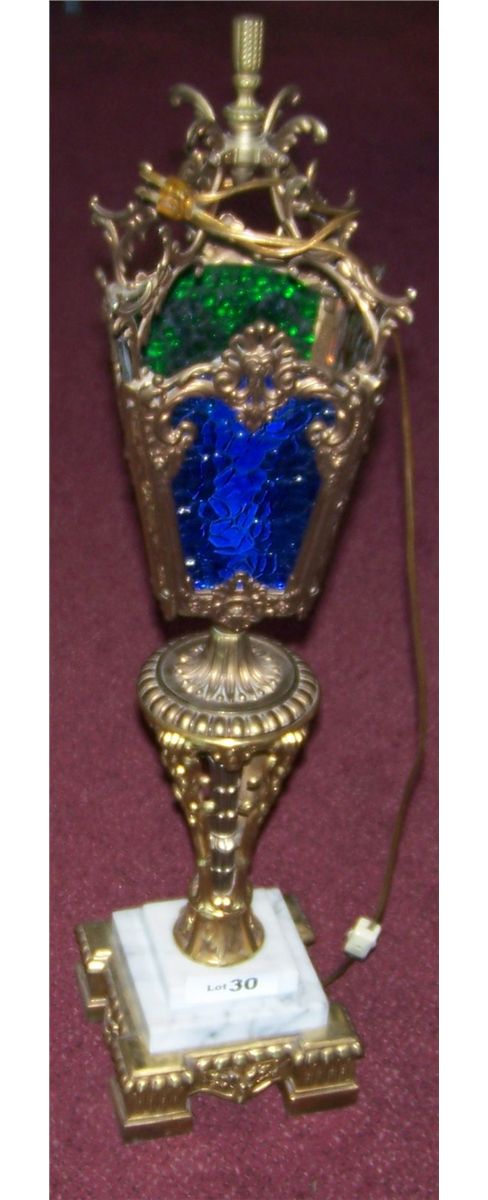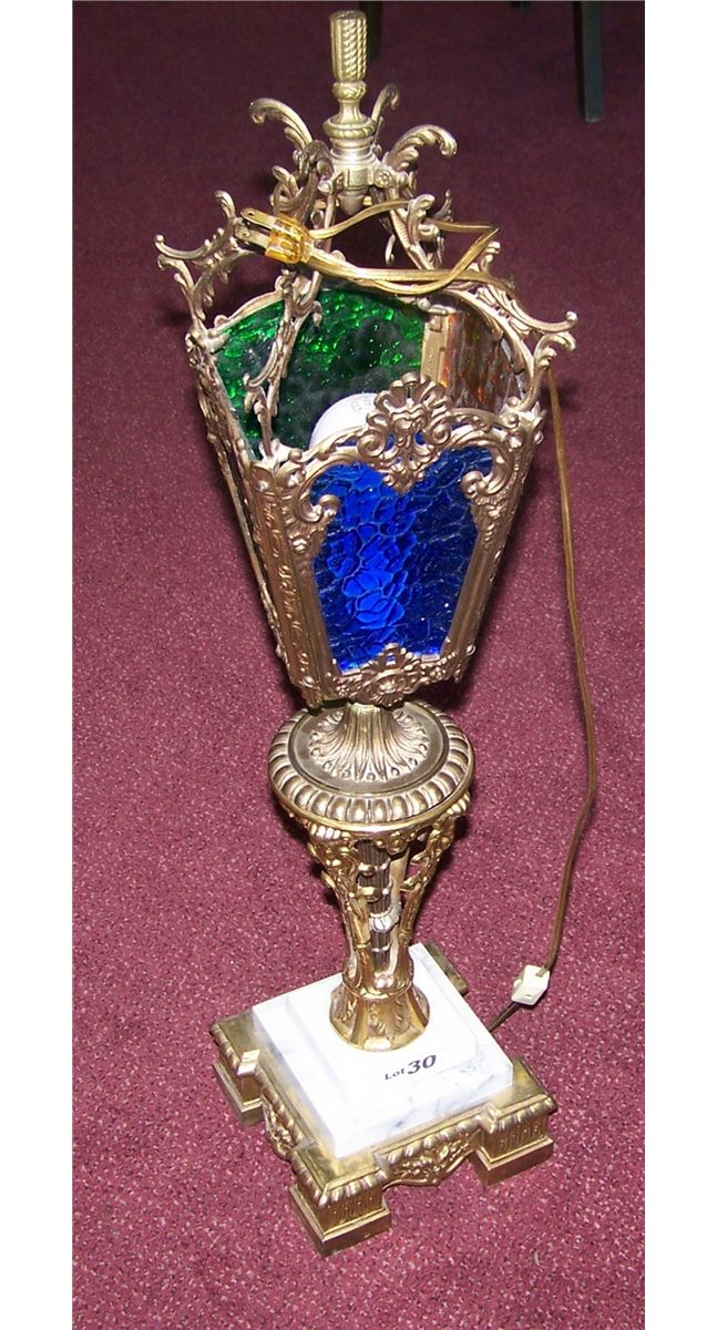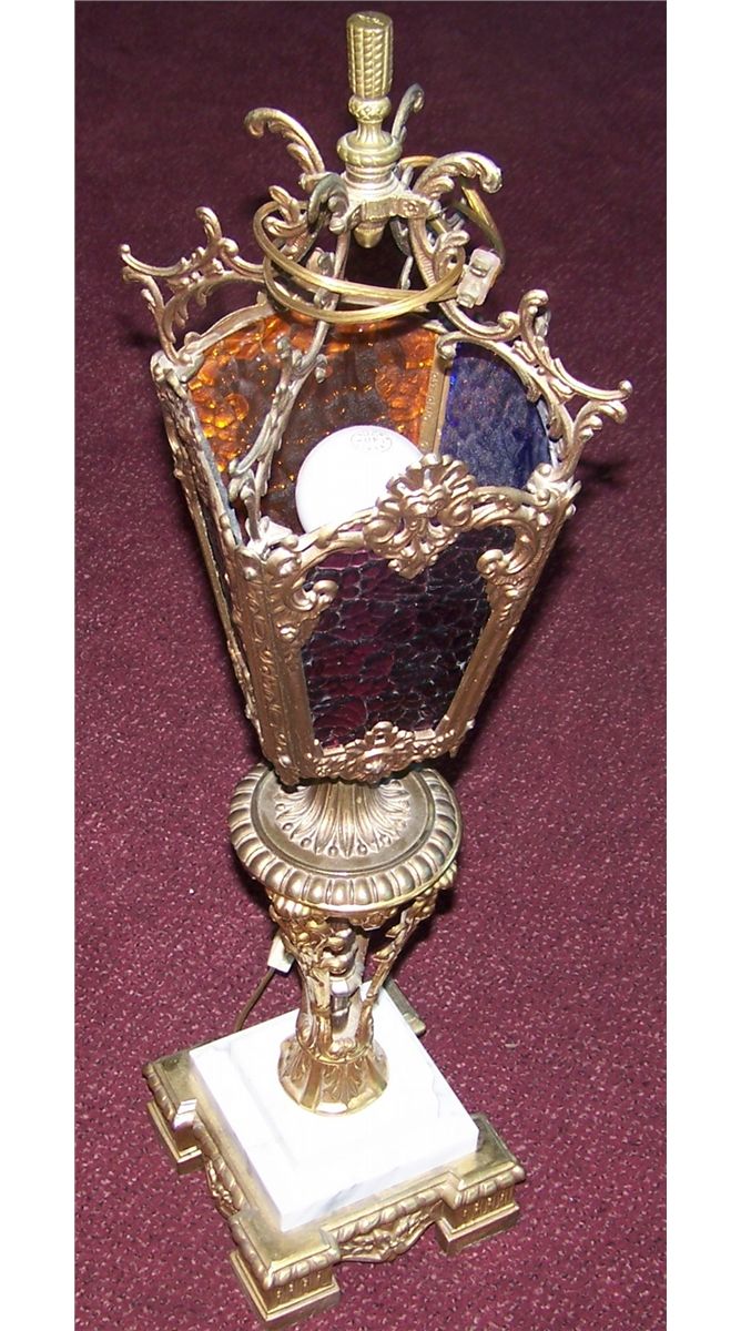 VINTAGE GOTHIC SLAG GLASS MEDEVIL CAST TABLE LANTERN