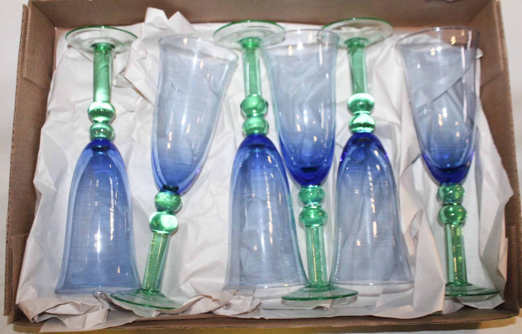 VINTAGE GREEN/BLUE WINE GLASSES (6)