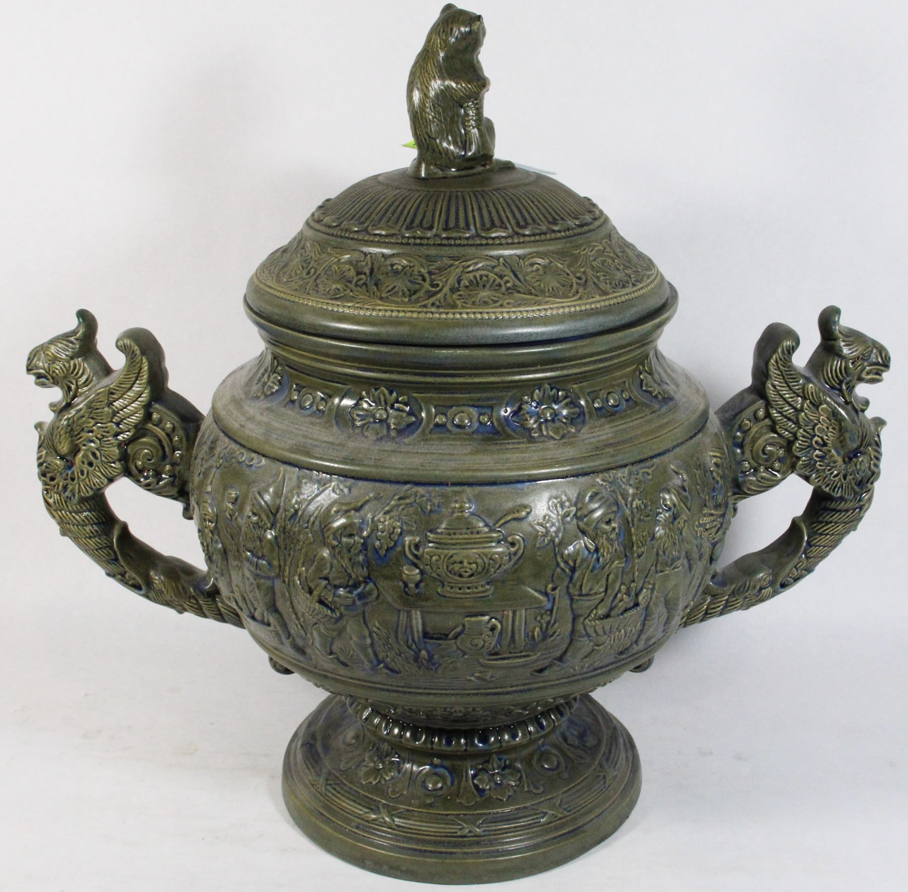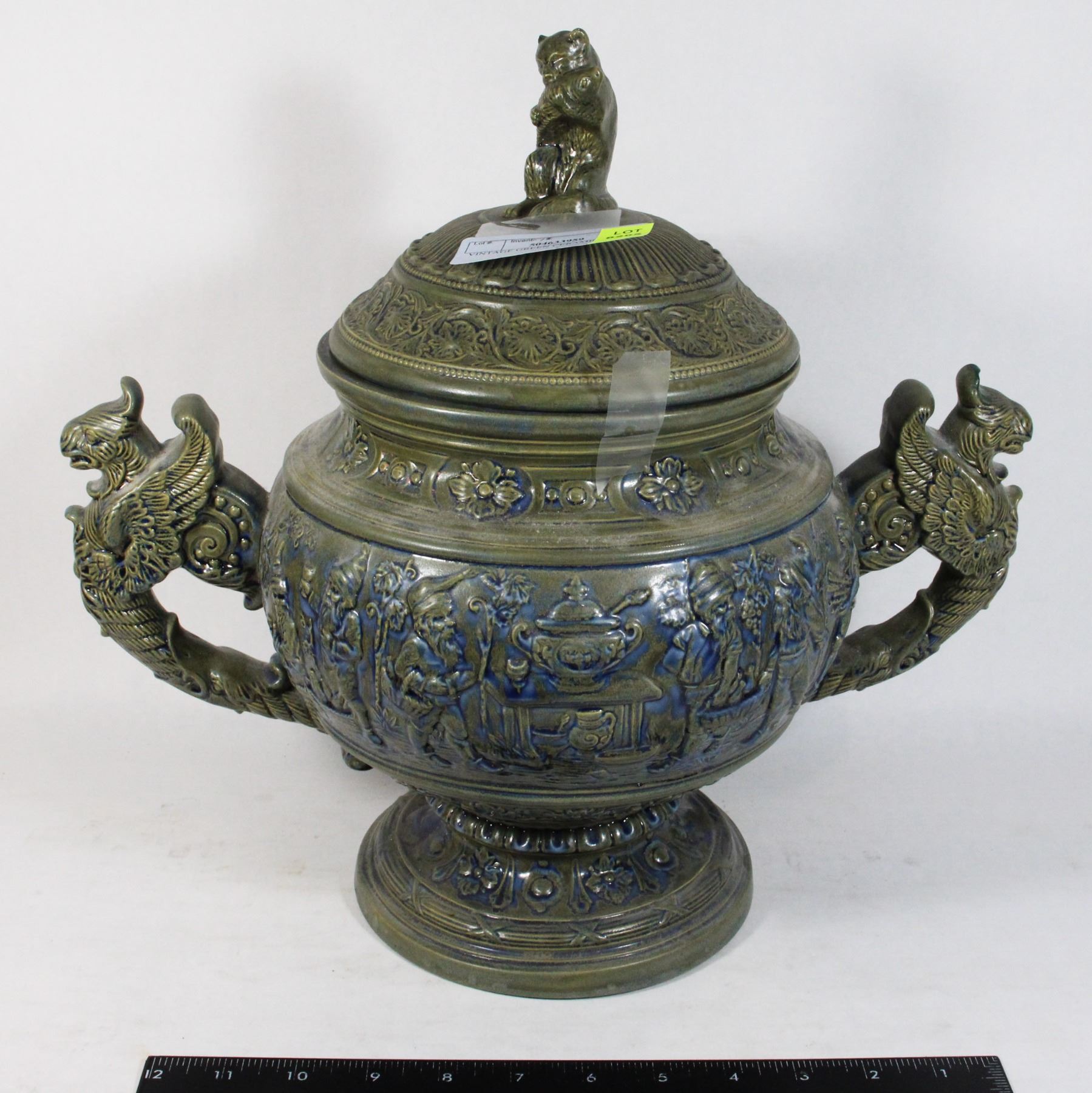 VINTAGE GREEN CERAMIC TUREEN 36X36CM