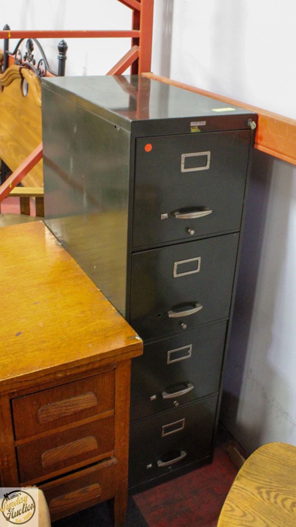VINTAGE GREEN FILE CABINET 4 DRAWERS WITH KEY