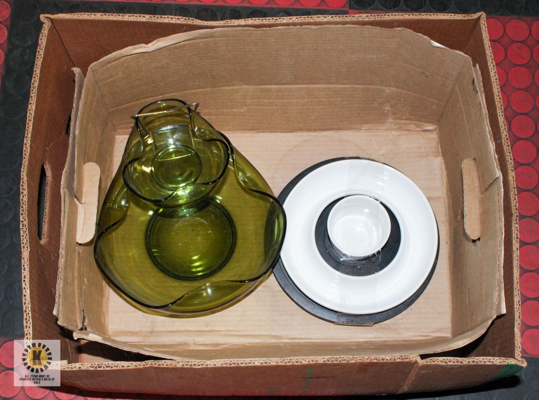 MODERN SWIVELING WHITE CHIP + DIP DISHES ALL TOGETHER **ALL ITEMS MUST BE REMOVED BY 5PM SATURDAY, APRIL 3RD 2025. ALL REMAINING ITEMS WILL BE SUBJECT TO A $6.00 PER DAY STORAGE CHARGE. ANY ITEMS REMAINING AFTER MONDAY, MAY 19TH 2025 WILL BE CONSIDERED FORFEITED. NO REFUNDS WILL BE ISSUED FOR FORFEITED ITEMS. TO SCHEDULE A PICK UP APPOINTMENT CLICK HERE