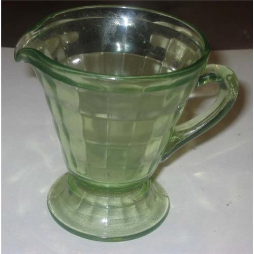 <tr><td>Title:VINTAGE GREEN GLASS PITCHER / CREAMER 1940s</td></tr>
