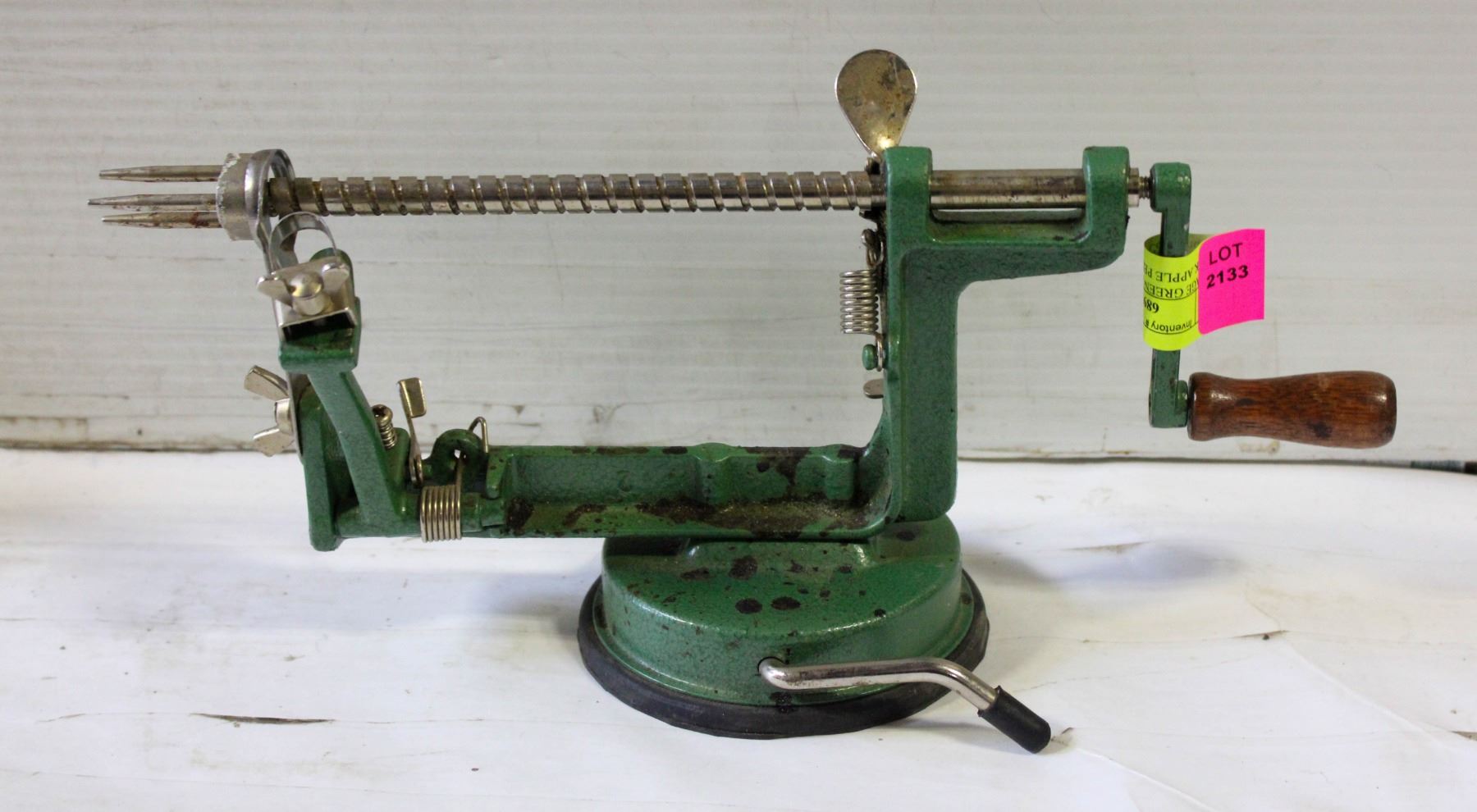 VINTAGE GREEN METAL HAND CRANK APPLE PEELER