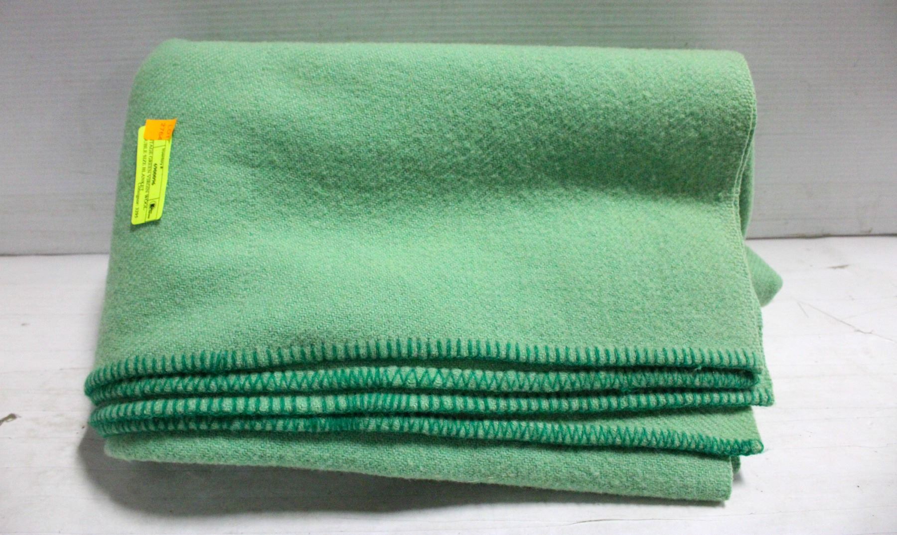 VINTAGE GREEN VIRGIN WOOL DOUBLE SIZE BLANKET