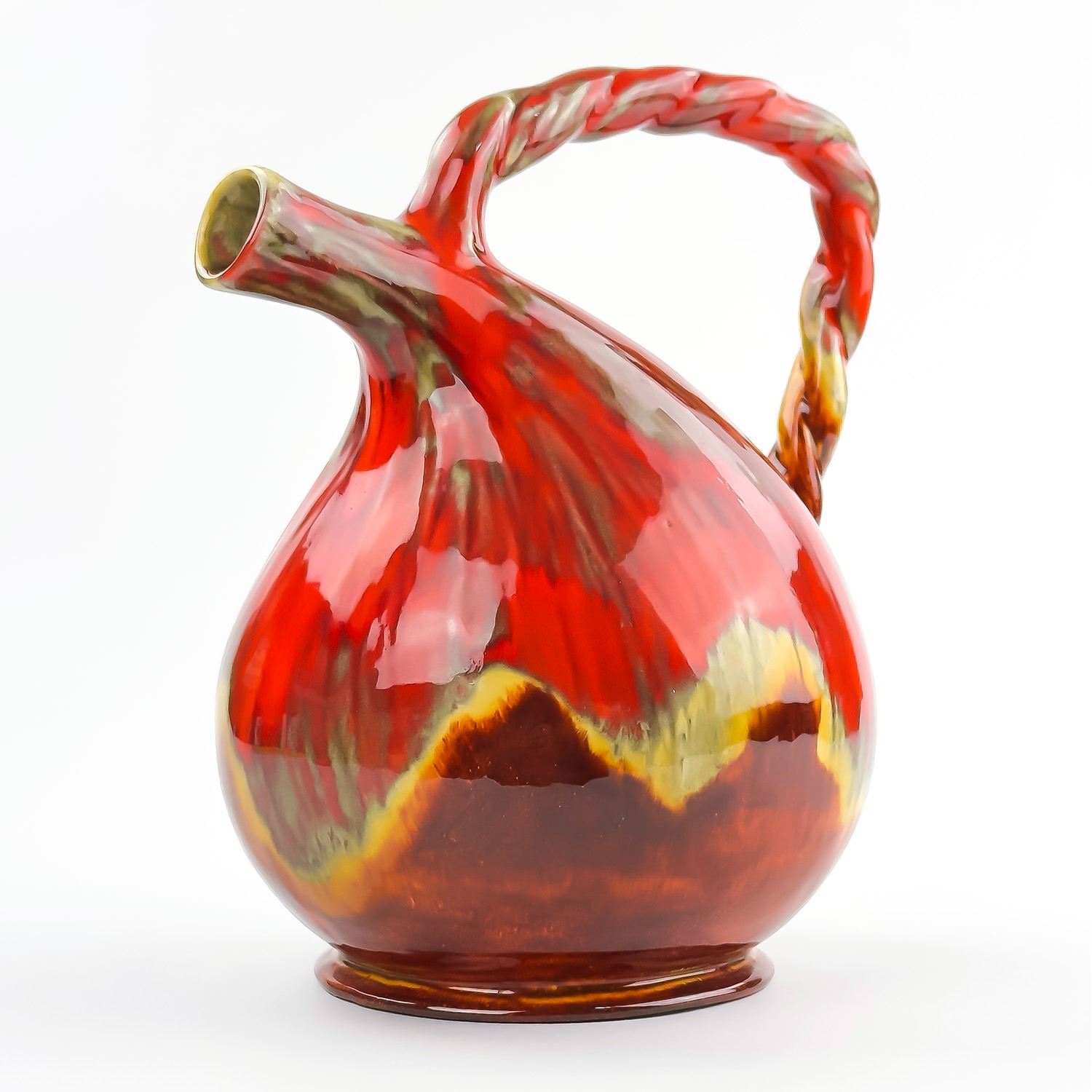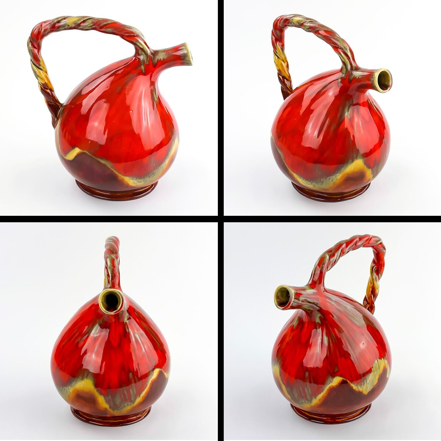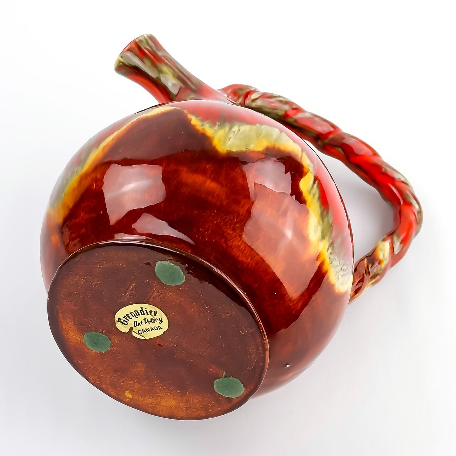 #8039 - GRENADIER GLAZED STUDIO ART POTTERY CANADA CANADIAN. HOME OR BAR DECOR WATER PITCHER POTTERY SCULPTURE. MEASURES: 9” (23 CM) TALL BY 8” (20.5 CM) WIDEST DIAMETER - SPOUT TO HANDLE