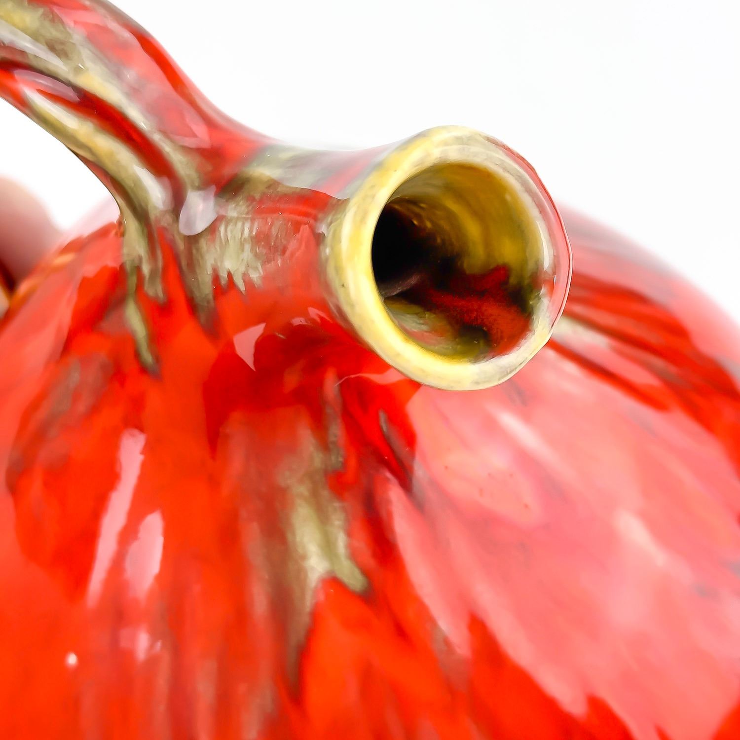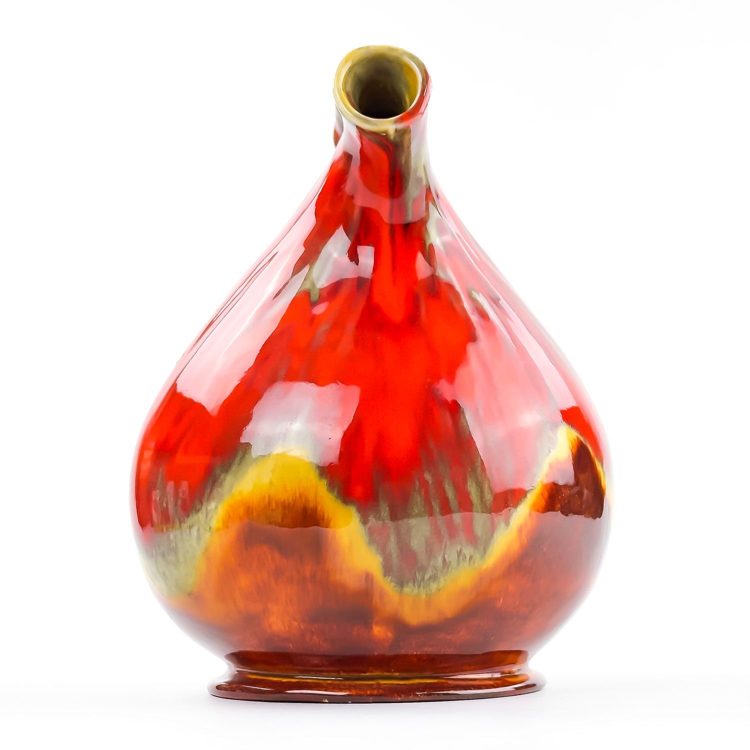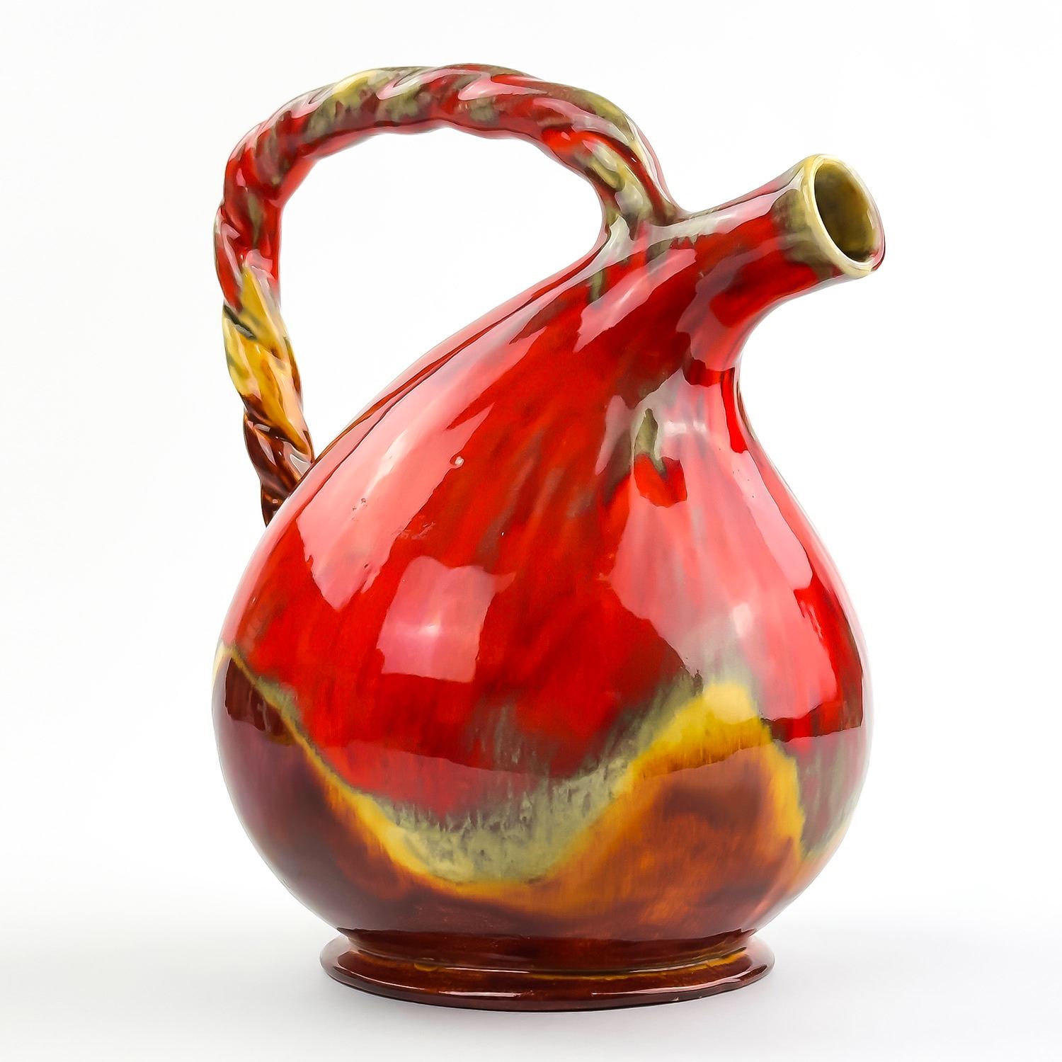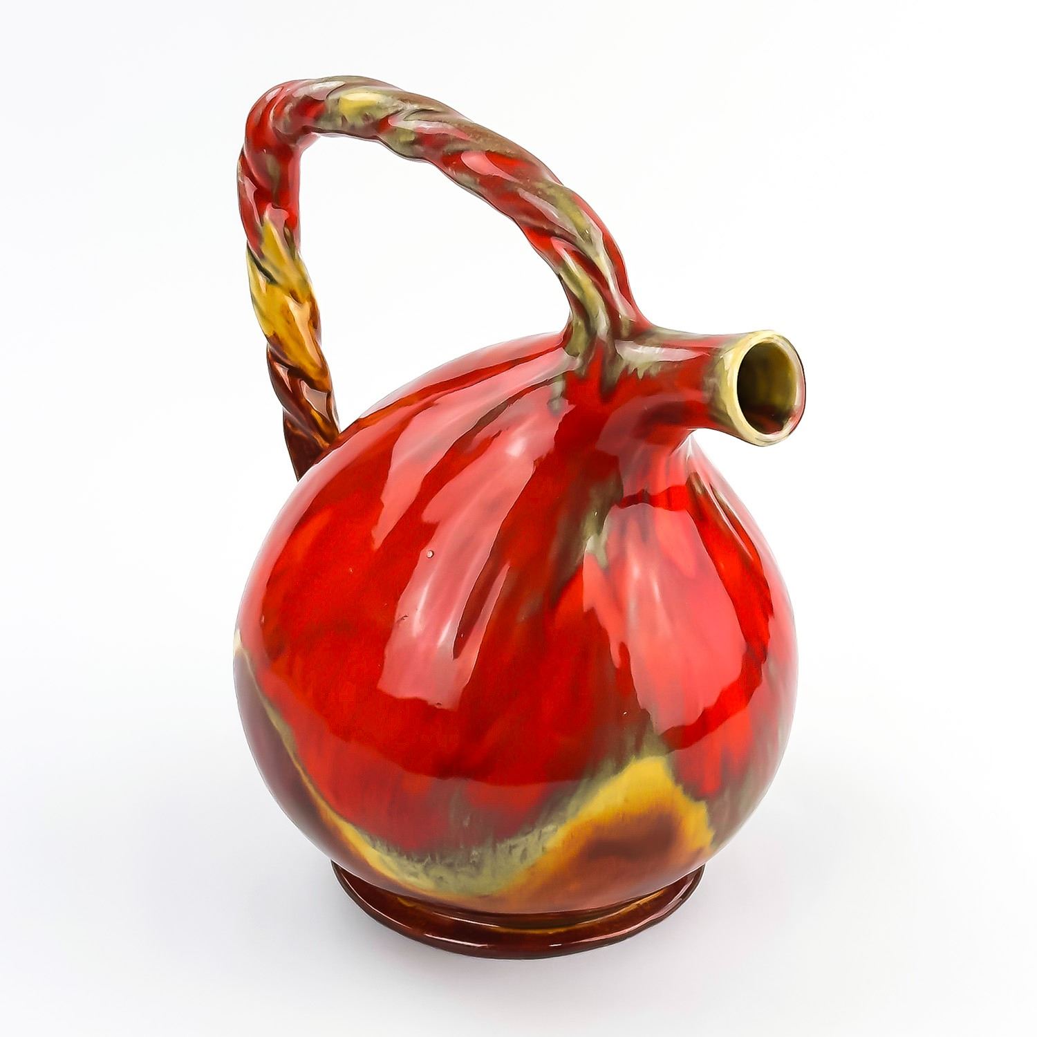 #8039 - GRENADIER GLAZED STUDIO ART POTTERY CANADA CANADIAN. HOME OR BAR DECOR WATER PITCHER POTTERY SCULPTURE. MEASURES: 9” (23 CM) TALL BY 8” (20.5 CM) WIDEST DIAMETER - SPOUT TO HANDLE