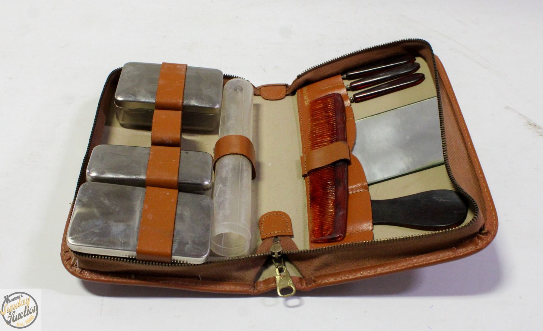VINTAGE GROOMING SET IN LEATHER CASE