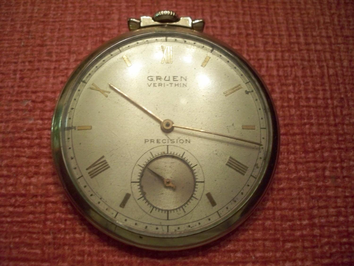 VINTAGE GRUEN VERITHIN PRECISION POCKET WATCH! RUNS GREAT, NO DAMAGE