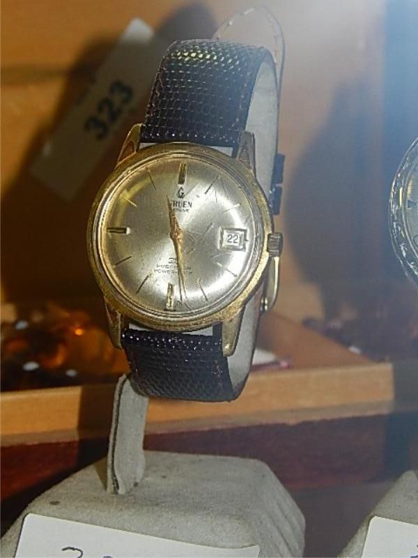 VINTAGE GRUEN WRIST WATCH - GENEVE - 25 PRECISION WITH LEATHER STRAP - POWER DATE