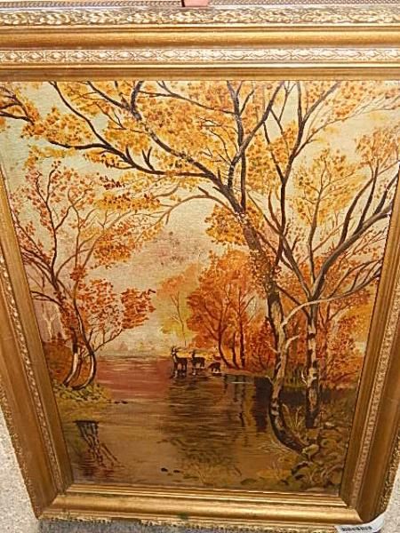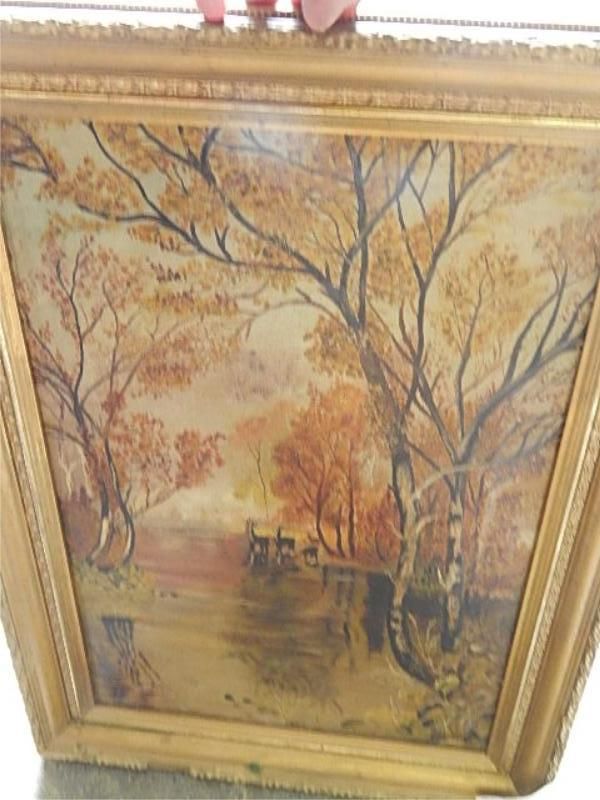 VINTAGE GUILDED FRAMED PICTURE - FOREST - DEER