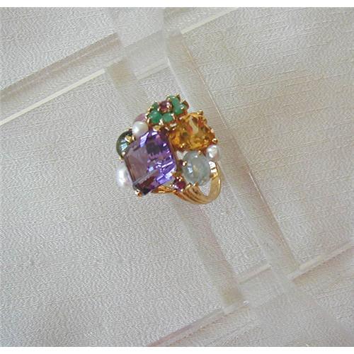 VINTAGE GUMPS 14K YELLOW GOLD,GEM AMETHYST & MULTI GEM SET RING. MINT CONDITION AND ABSOLUTELY STUNNING.