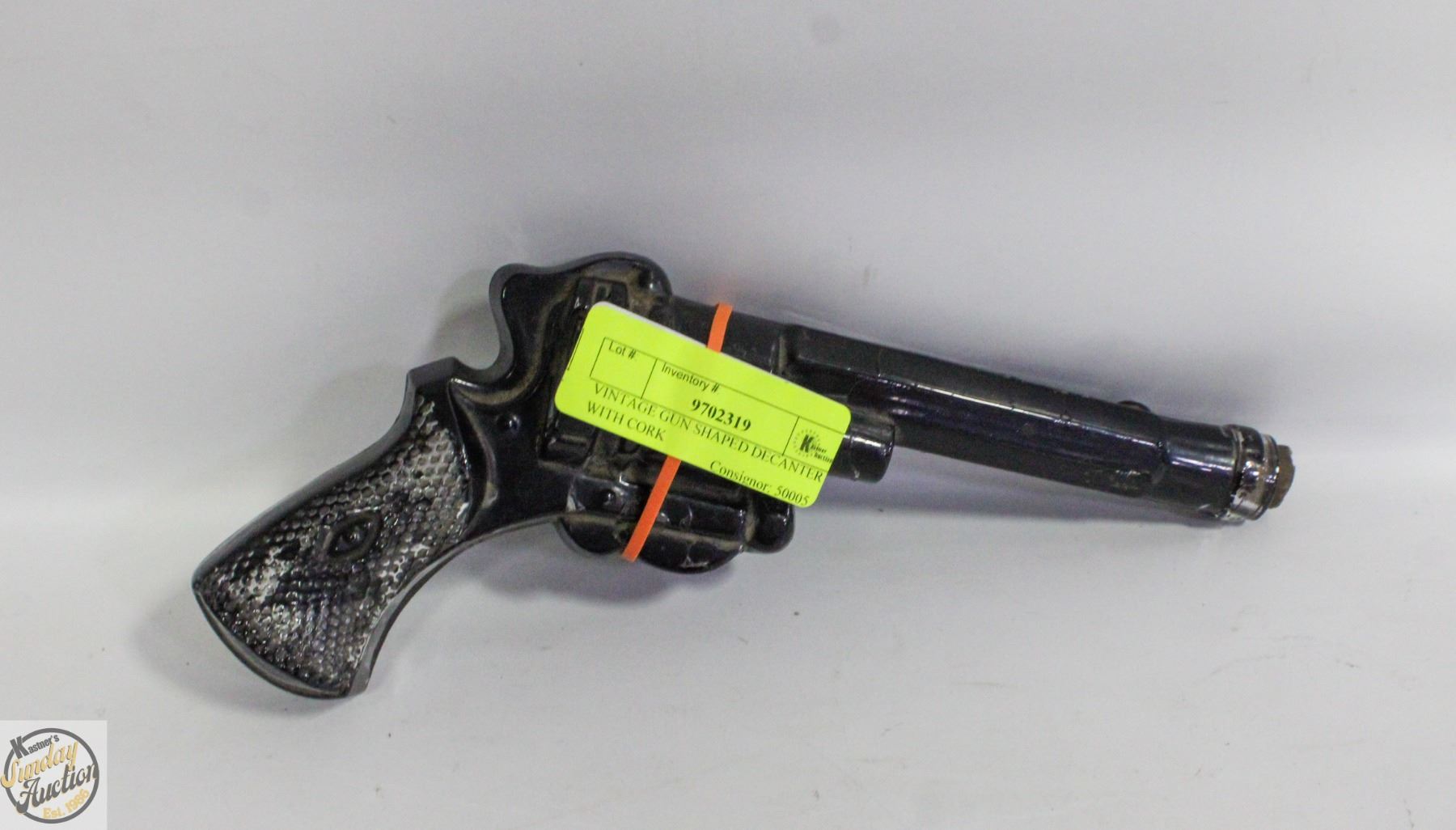 VINTAGE GUN SHAPED DECANTER WITH CORK