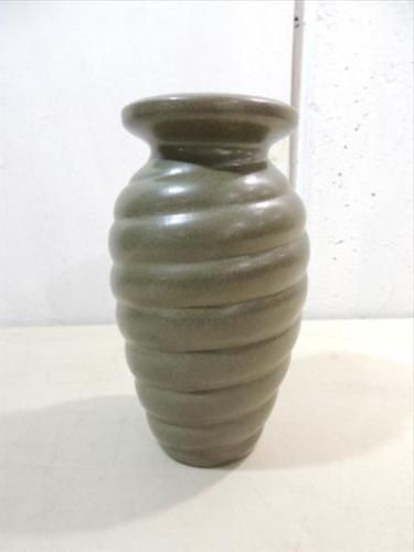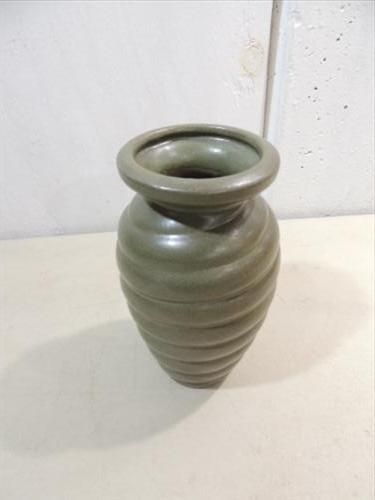 VINTAGE HAEGER ART DECO STYLE DARK GREEN TURNED CERAMIC VASE. 8"H. AS SHOWN. VIEW PICTURE FOR DETAIL.
