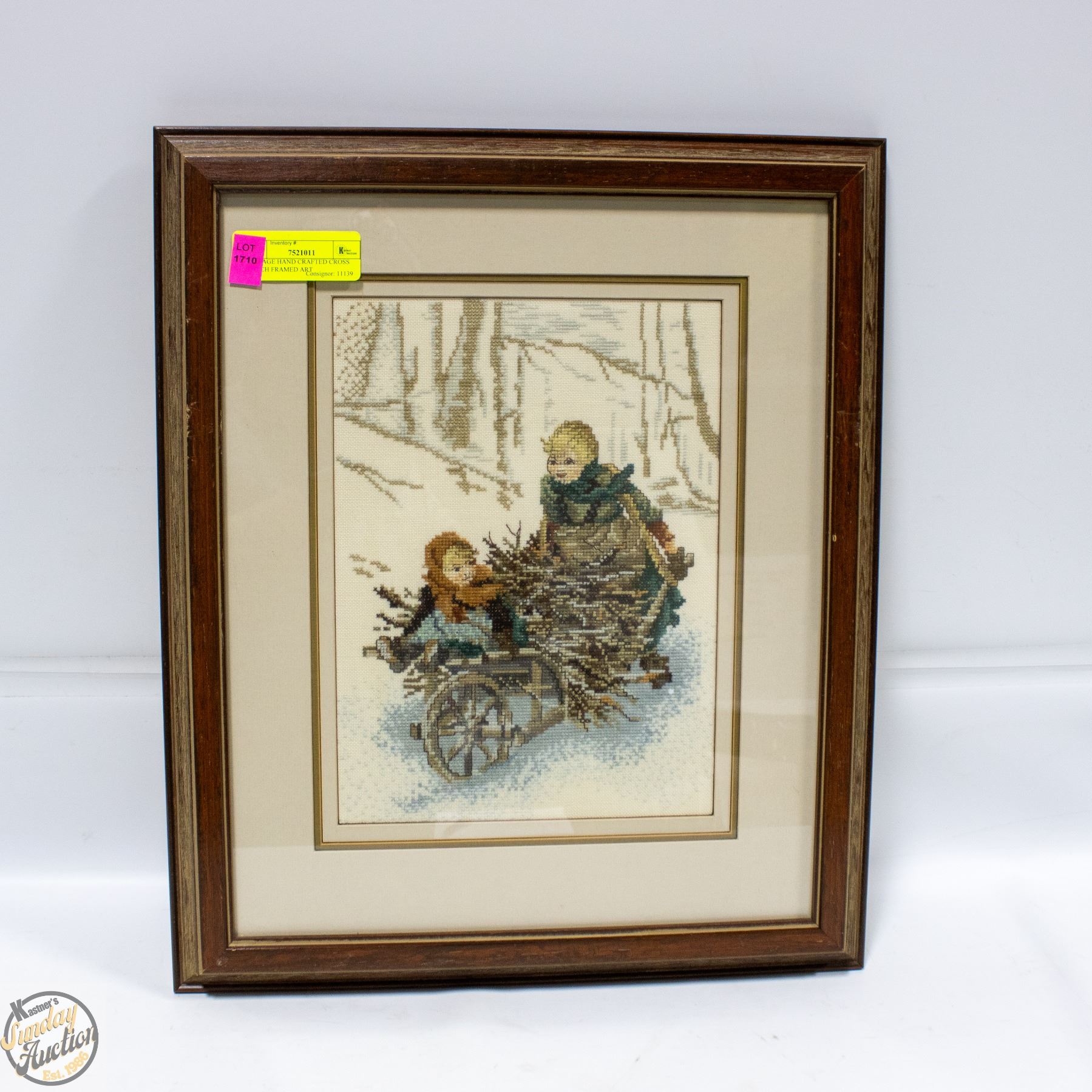 VINTAGE HAND CRAFTED CROSS STITCH FRAMED ART