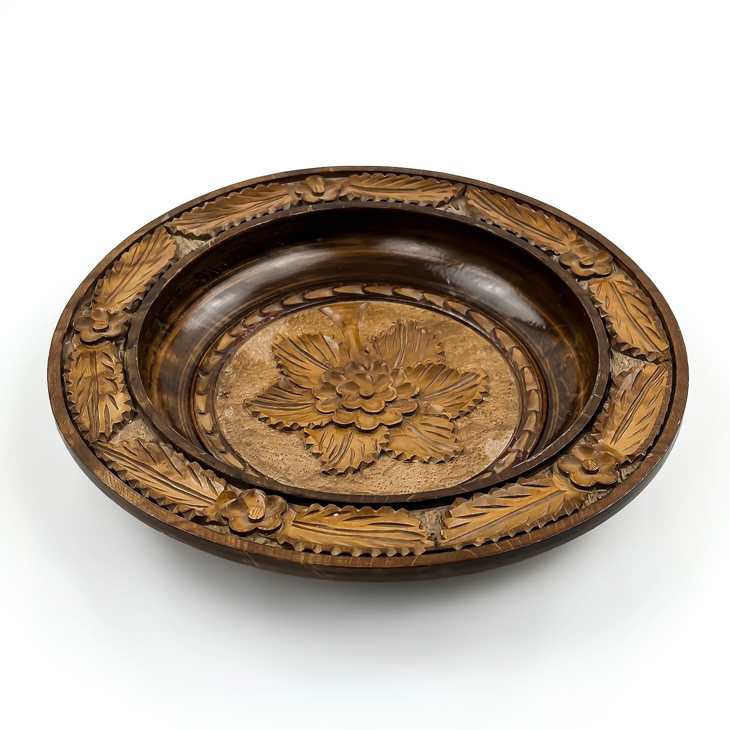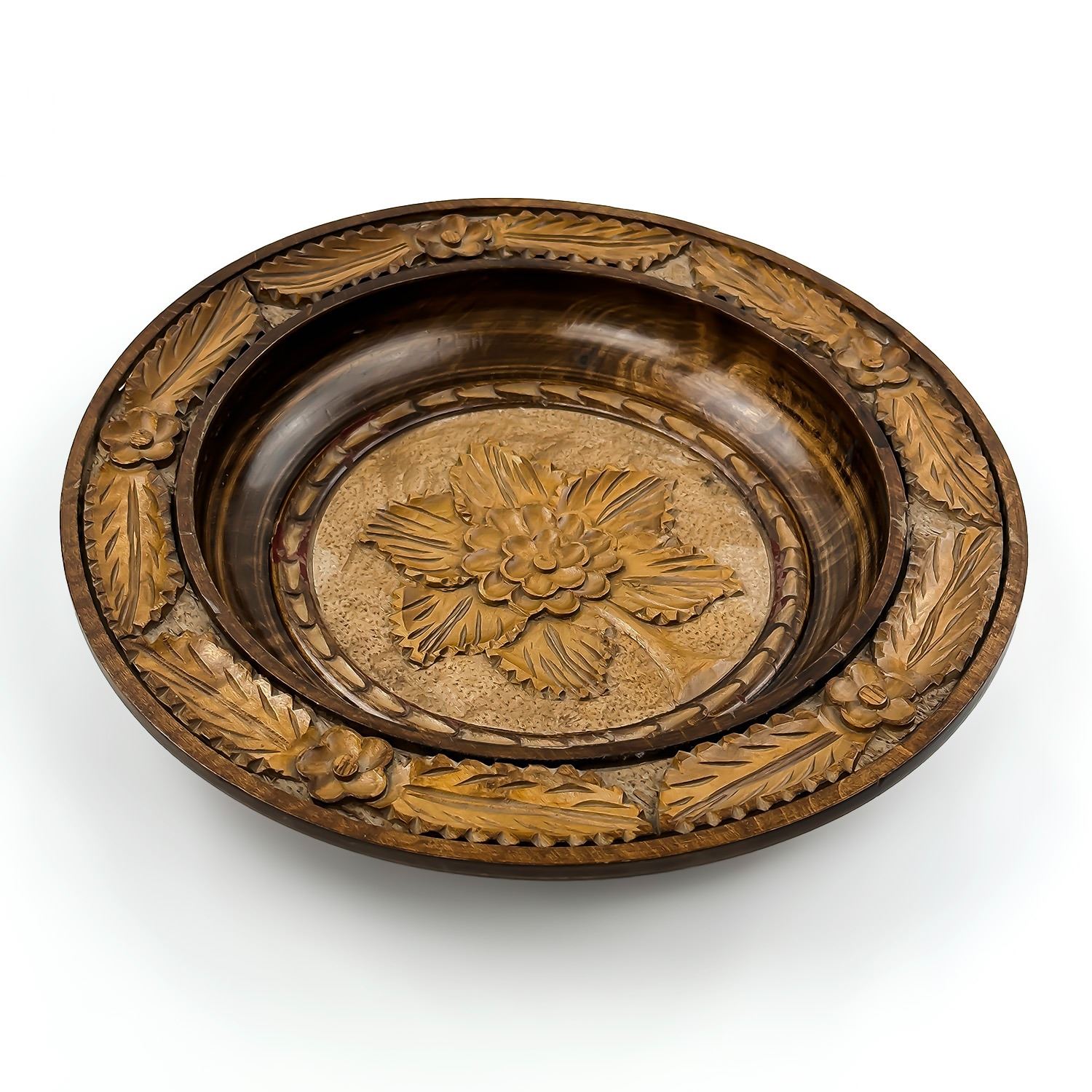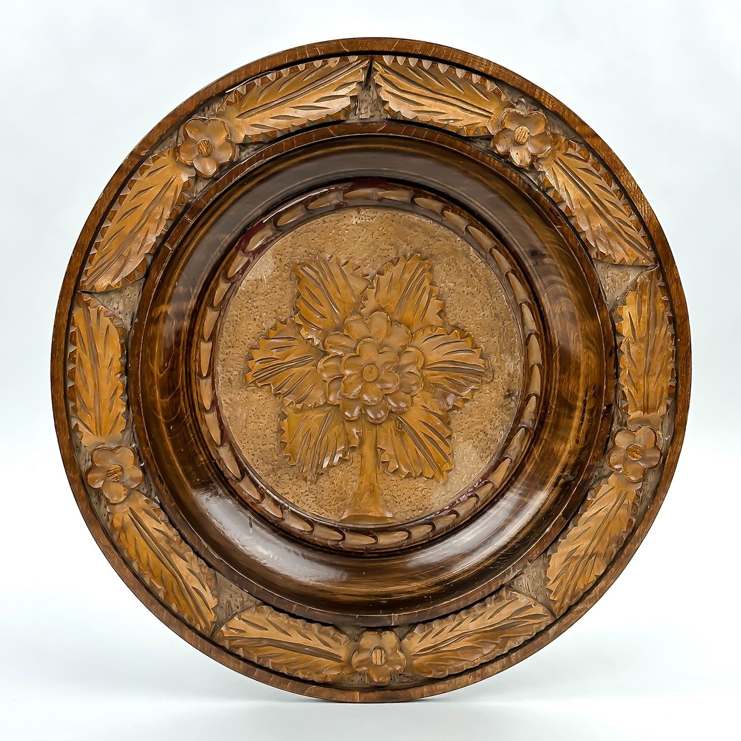 #8046 - FOLK ART STYLE WOODEN PLATE WITH A FLORAL THEME. MEASURES: 11” (28 CM) DIAMETER AND SITS 1.5” (4 CM) HIGH.***ITEM(S) LOCATED IN LETHBRIDGE ALBERTA. FREE TRANSPORT TO EDMONTON OFFICE AVAILABLE FOR THIS AUCTION. WORLDWIDE SHIPPING IS AVAILABLE FOR ALL ITEMS