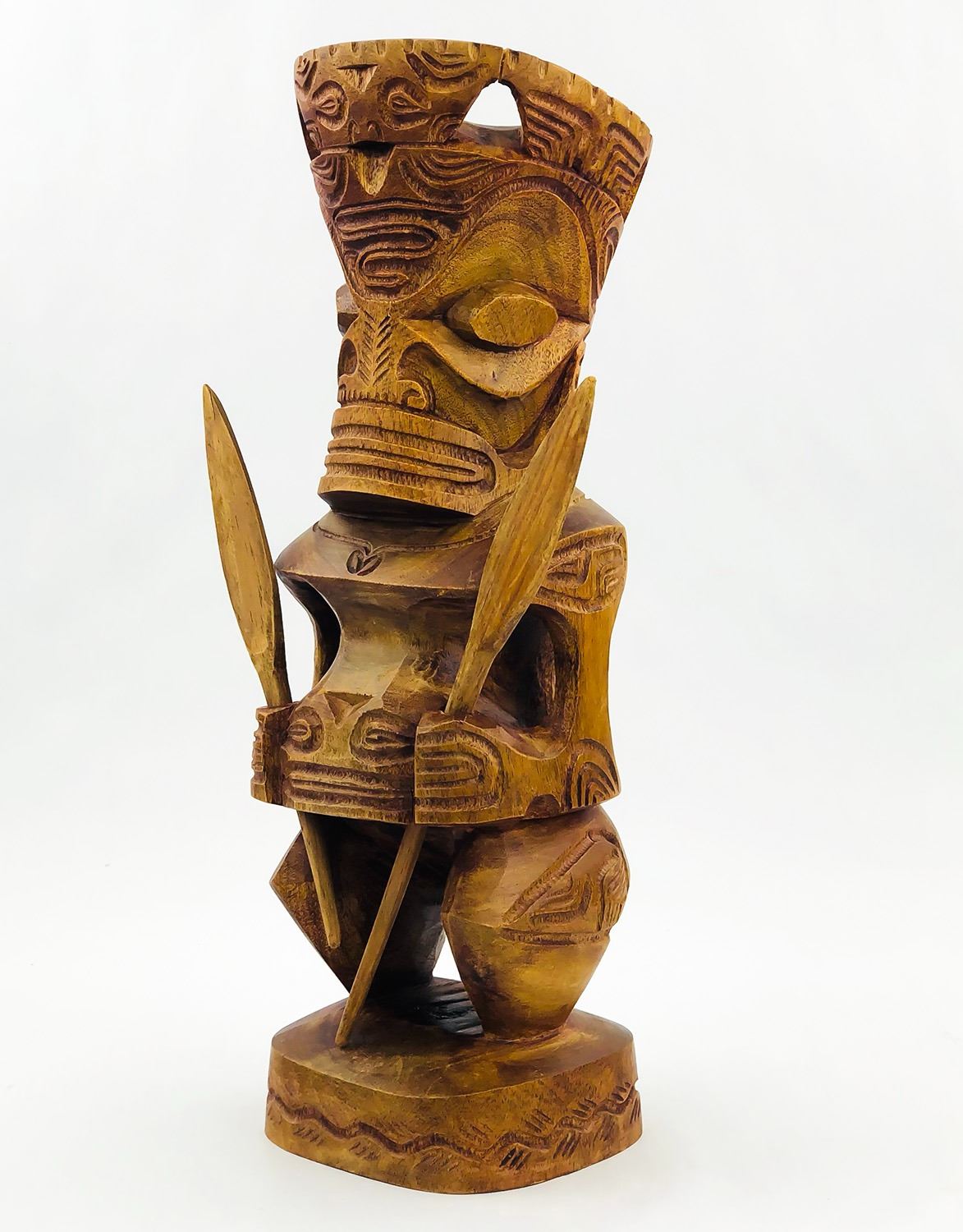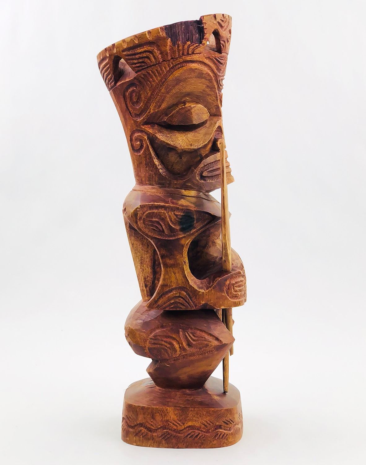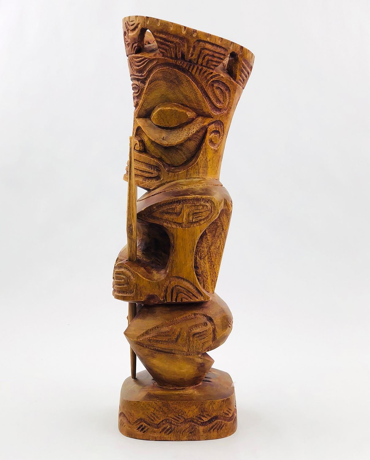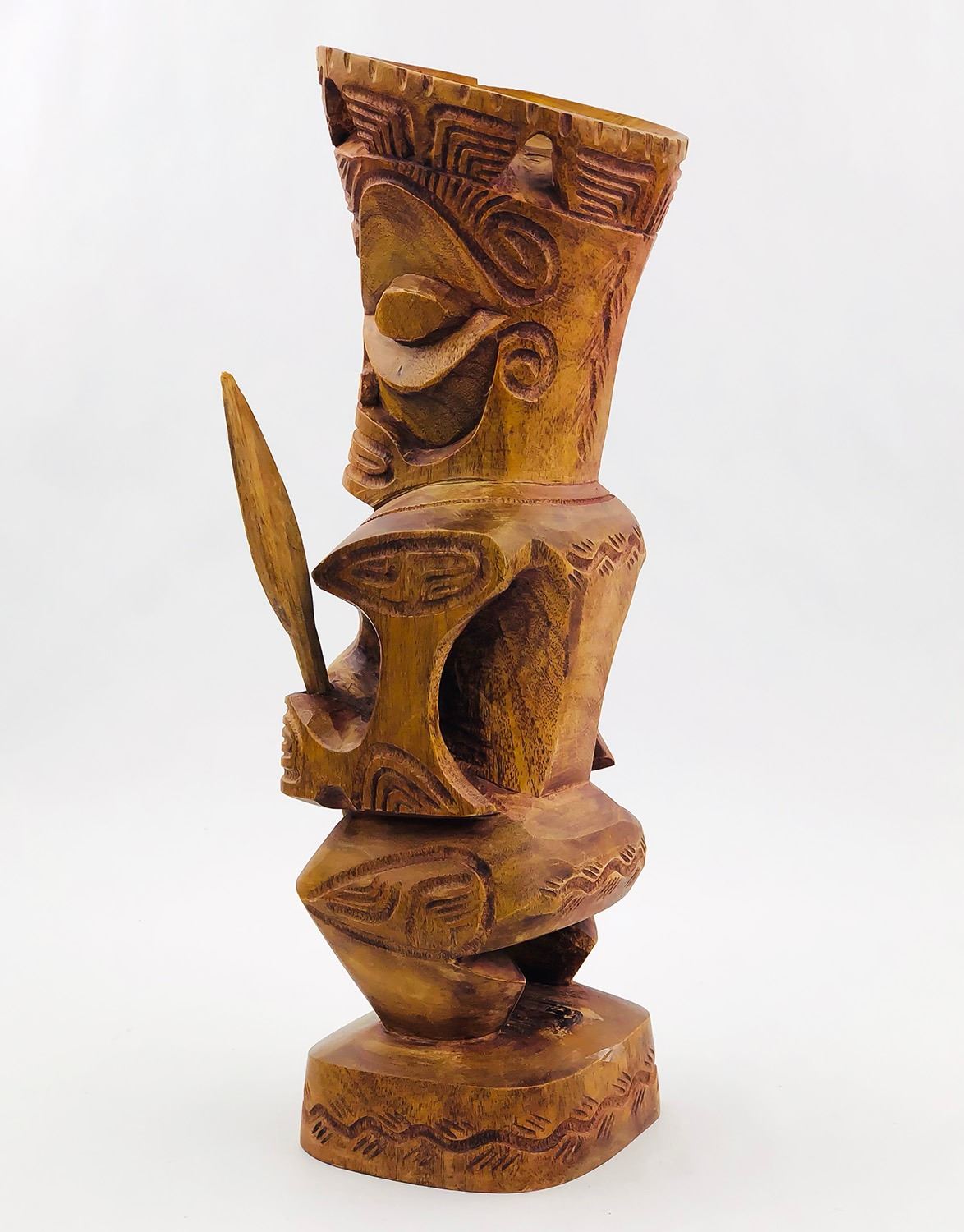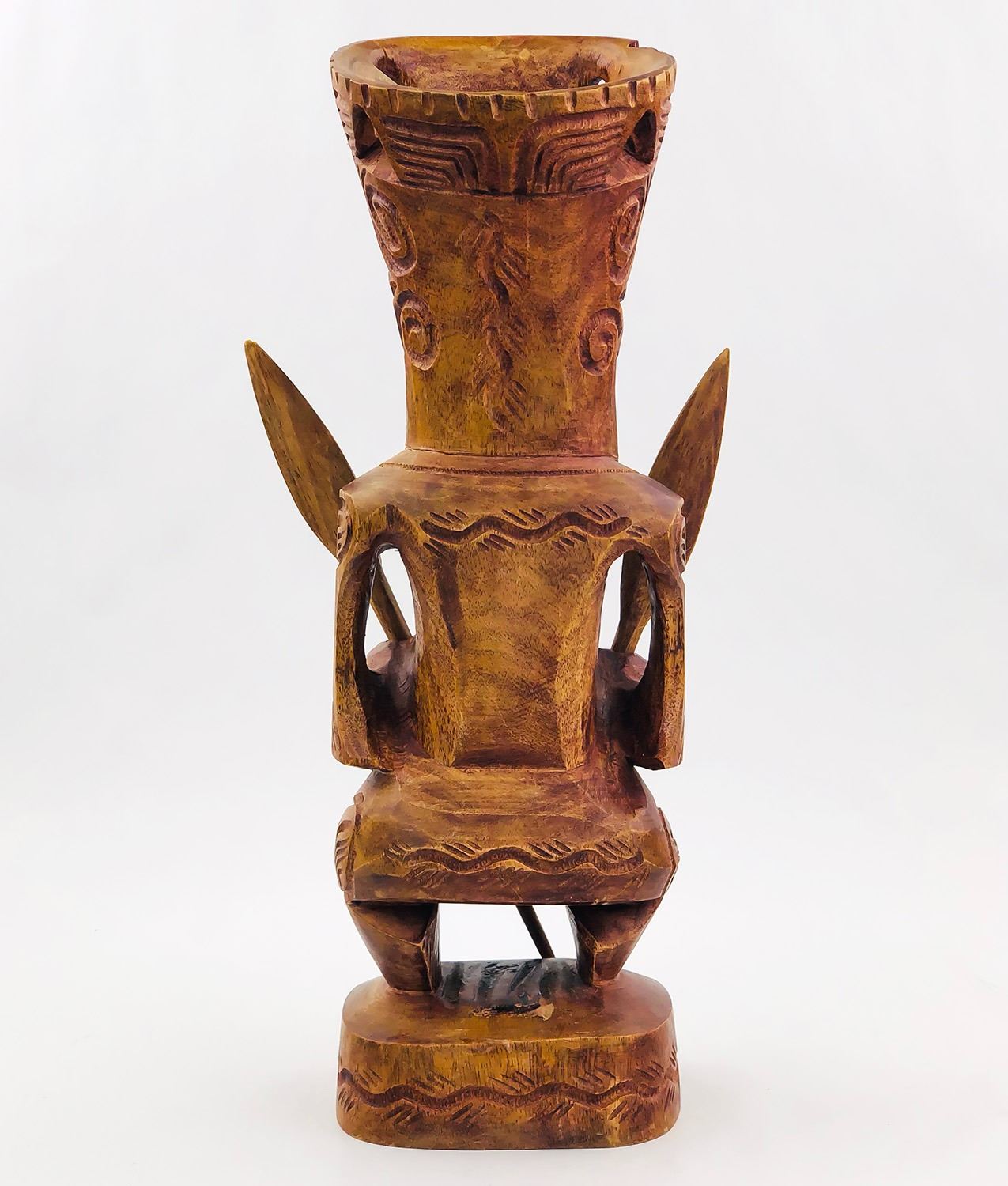 #9009 - HAWAIIAN TIKI HOLDING REMOVABLE SPEARS. NOTE: ONE SPEAR BROKEN/SHORTER THAN THE OTHER, UNSURE OF THE TYPE OF WOOD USED. MEASURES 13.5” (34 CM) TALL BY ROUGHLY 4.25” (11 CM) WIDTH, 4” (10 CM) DEPTH***ITEM(S) LOCATED IN LETHBRIDGE ALBERTA. ALL ITEMS IN THIS AUCTION QUALIFY FOR OUR FREE TRANSPORT TO EDMONTON SERVICE. WORLDWIDE SHIPPING AVAILABLE
