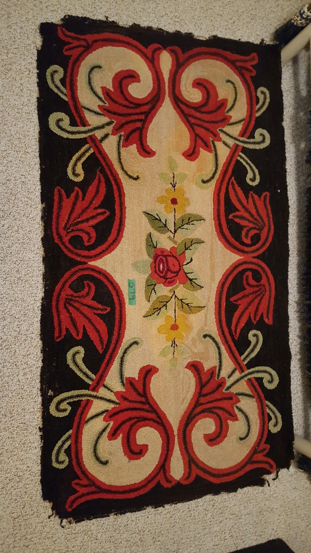 VINTAGE HAND MADE RUG C/B HUTTERITE 59"X32"