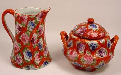 VINTAGE HAND PAINTED CREAMER AND SUGAR