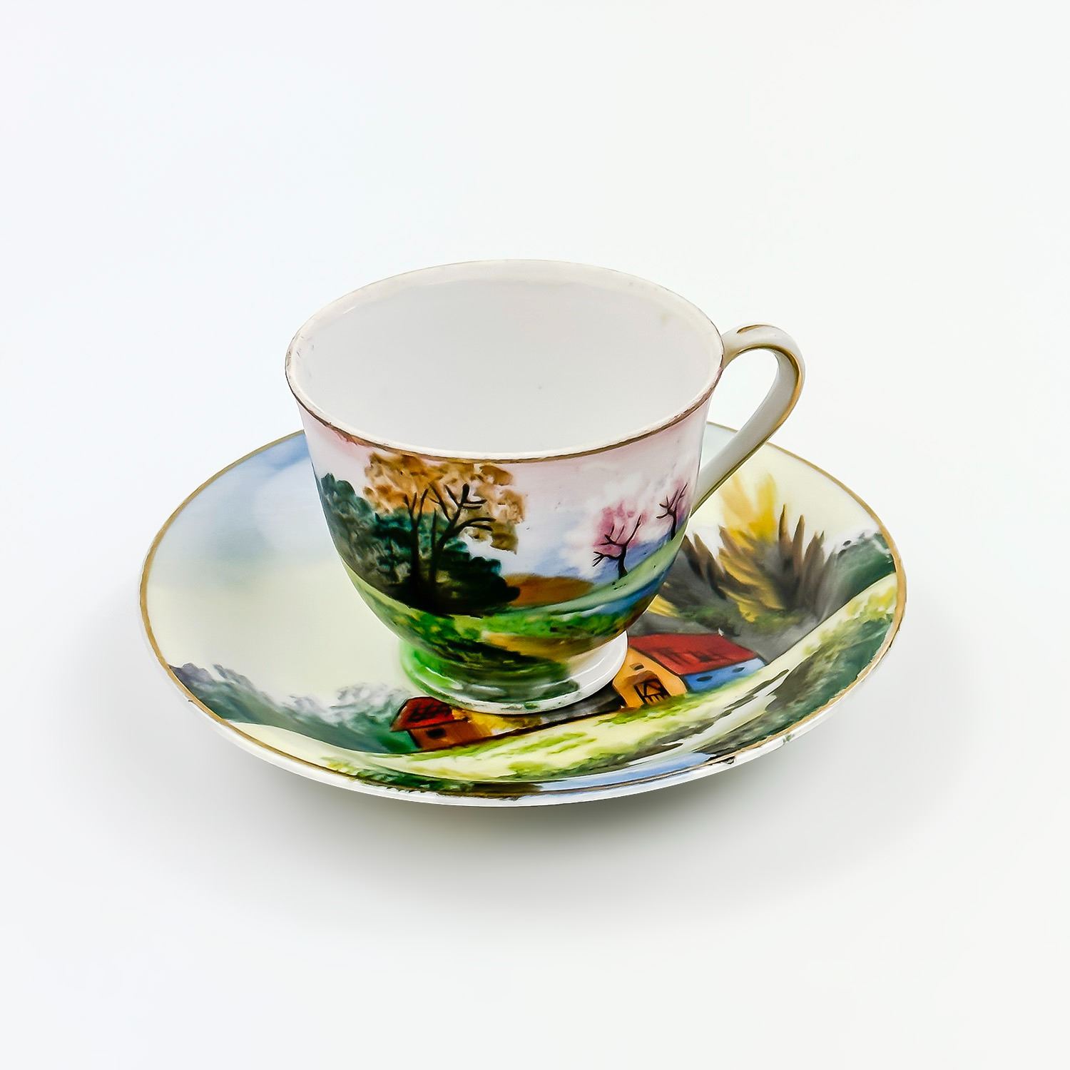 #8098 - SMALL CUP AND SAUCER. MEASURES: PLATE 4.75” (12 CM) DIAMETER. CUP 2.5” (6.5 CM) TOP DIAMETER BY 2” (5 CM) HIGH***ITEM(S) LOCATED IN LETHBRIDGE ALBERTA. FREE TRANSPORT TO EDMONTON OFFICE AVAILABLE FOR THIS AUCTION. WORLDWIDE SHIPPING IS AVAILABLE FOR ALL ITEMS