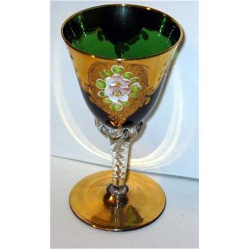 Old vintage GREEN HAND PAINTED CORDIAL Glass. Gorgeous for display, approx. 4" high