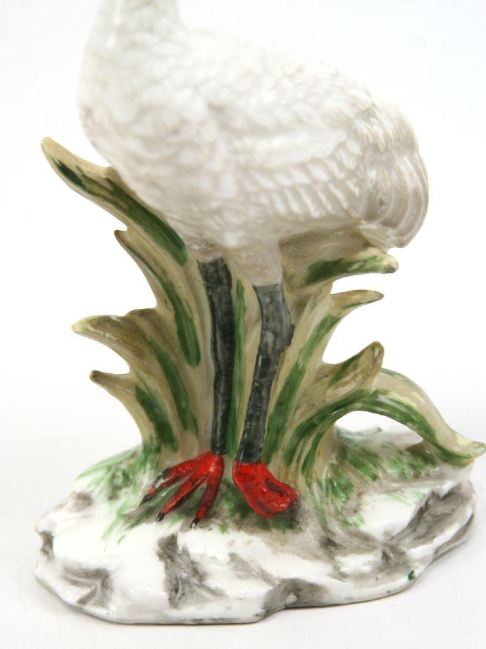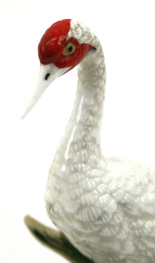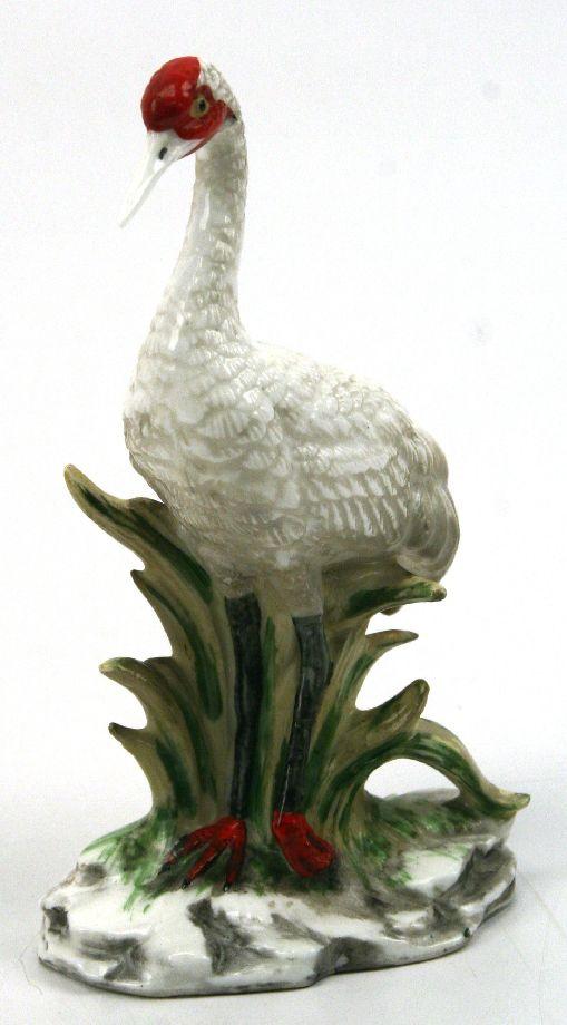 A wonderfully decorated 6 inch figurine of a Crane standing in brush. No makers marks, no chips cracks or repairs.