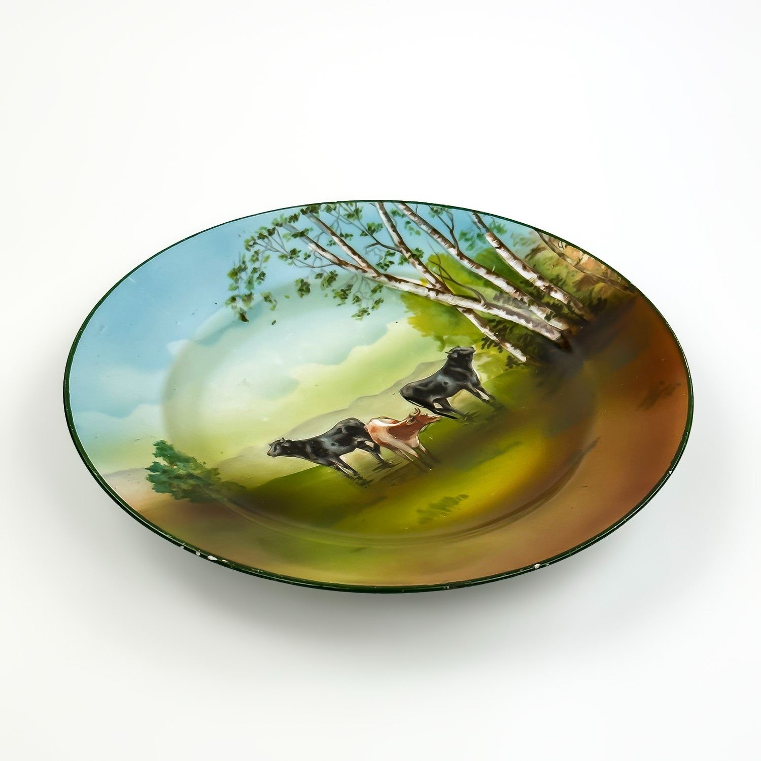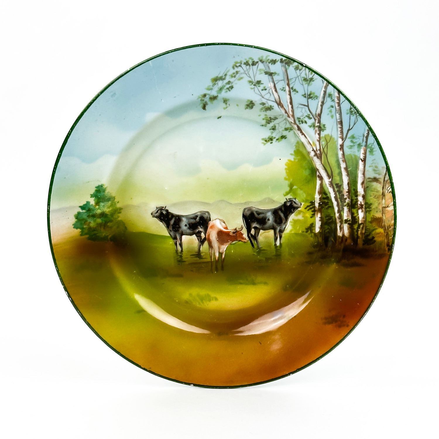 #8391 - ROYAL BAYREUTH PRIV. 1794 BAVARIA PLATE. HAND PAINTED PASTORAL SCENE WITH COWS, TREES AND LANDSCAPE. MEASURES: 8.25” (21 CM) DIAMETER***ITEM(S) LOCATED IN LETHBRIDGE ALBERTA. FREE TRANSPORT TO EDMONTON OFFICE AVAILABLE FOR THIS AUCTION. WORLDWIDE SHIPPING IS AVAILABLE FOR ALL ITEMS
