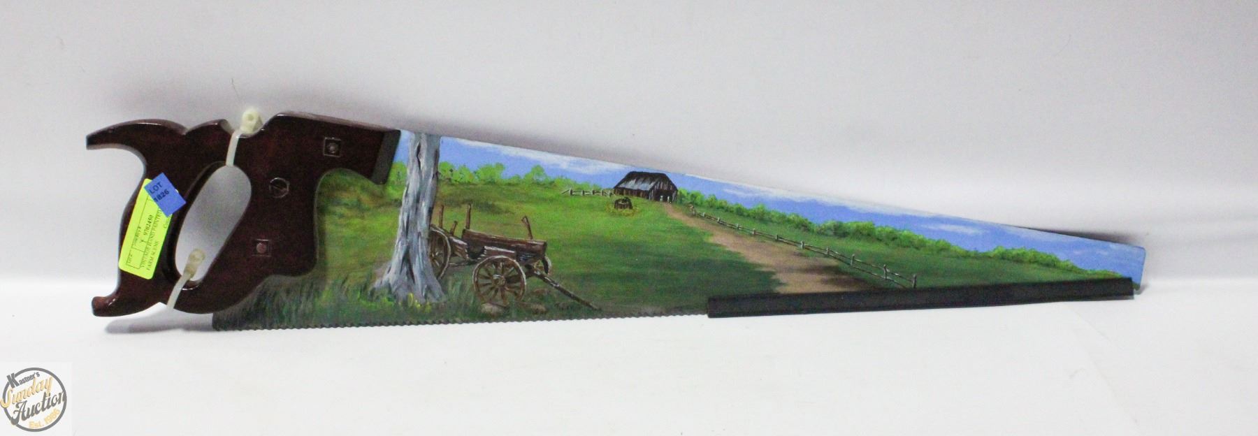 VINTAGE HAND PAINTED SAW WITH FARM SCENE