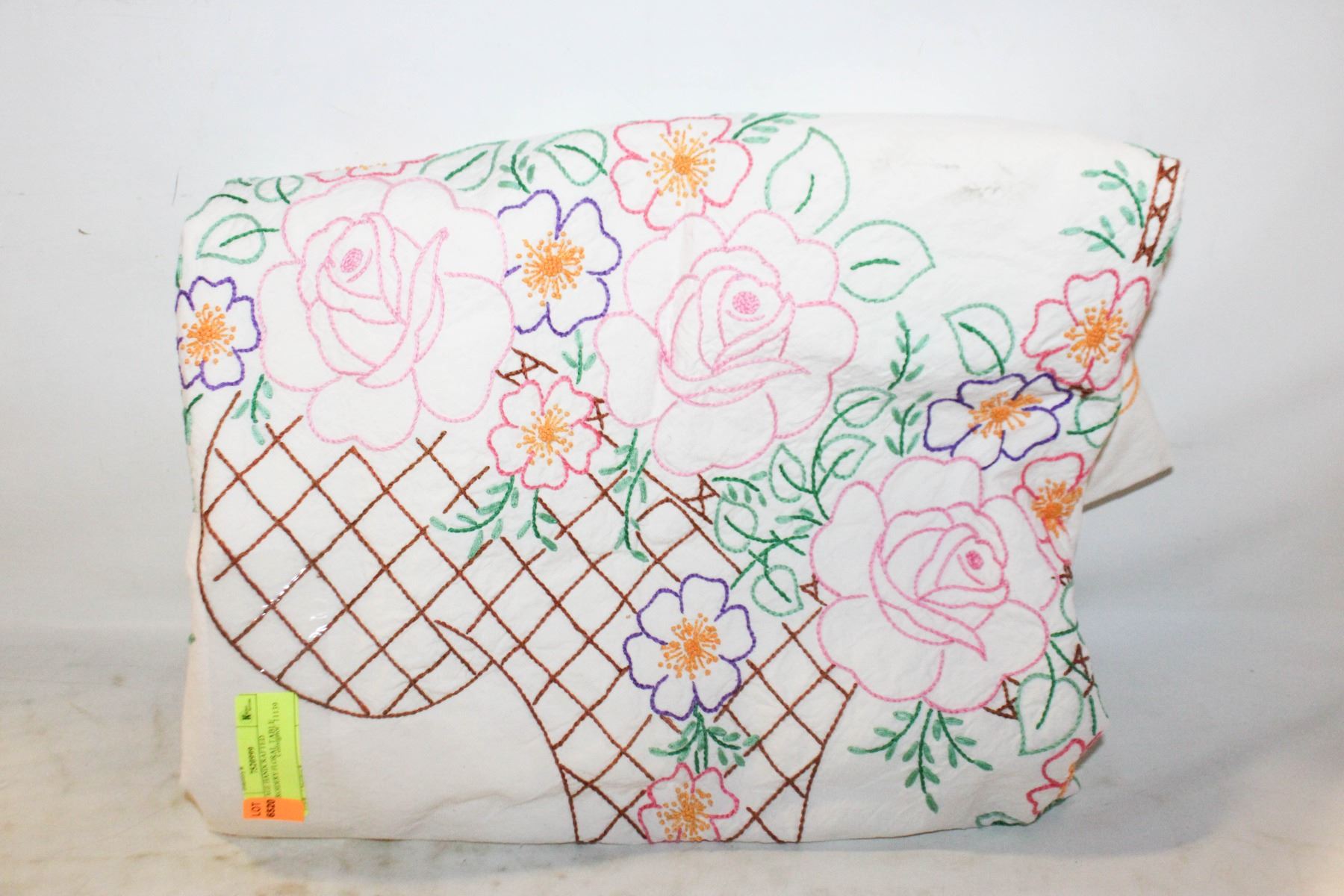 VINTAGE HANDCRAFTED EMBROIDERY FLORAL TABLE CLOTH