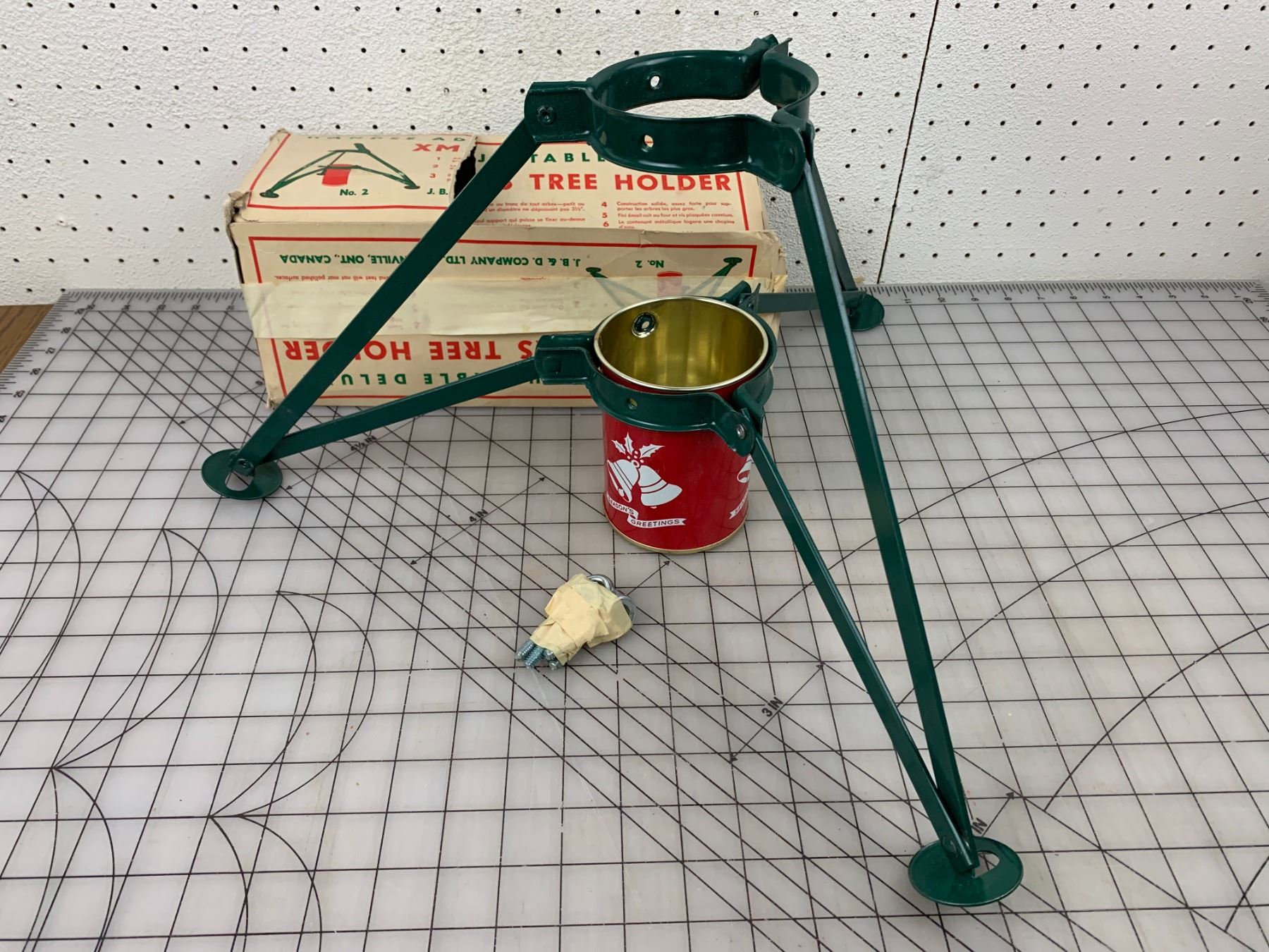 VINTAGE HANDEE TIN CHRISTMAS TREE STAND