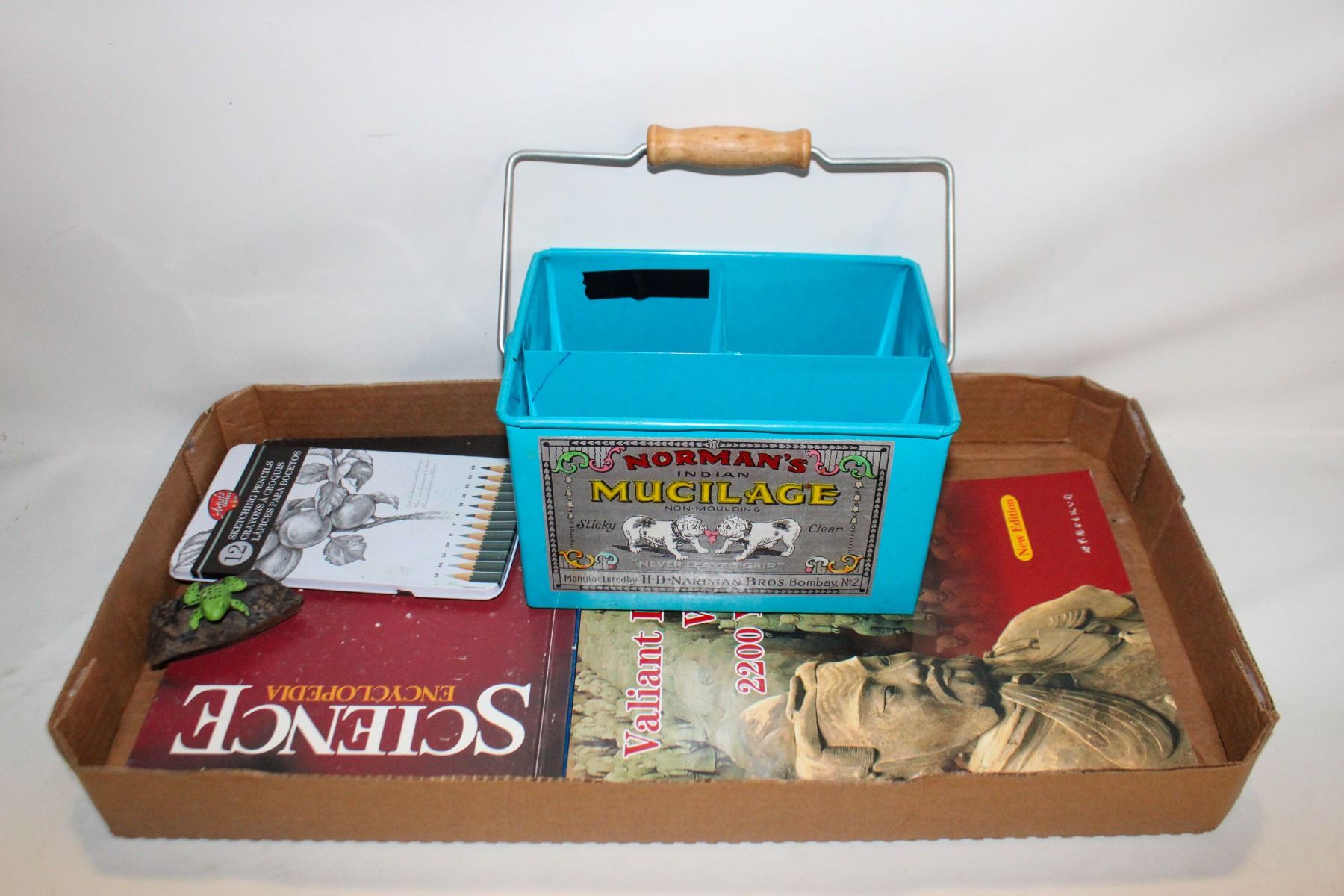 ORGANIZER + SKETCHING PENCILS + HANDMADE+PAINTED FROG ON ROCK (REAL ROCK) ESTATE