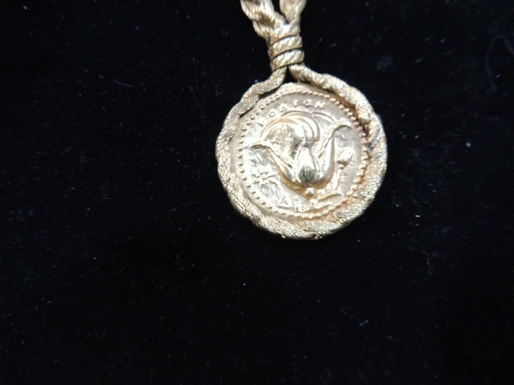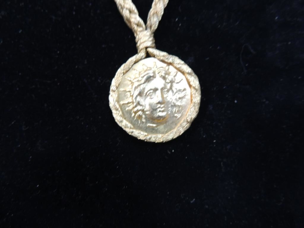 GOLDTONE ROPE NECKLACE AND PENDANT HANDMADE IN GREECE AS SHOWN SEE PHOTO FOR MORE DETAILS.