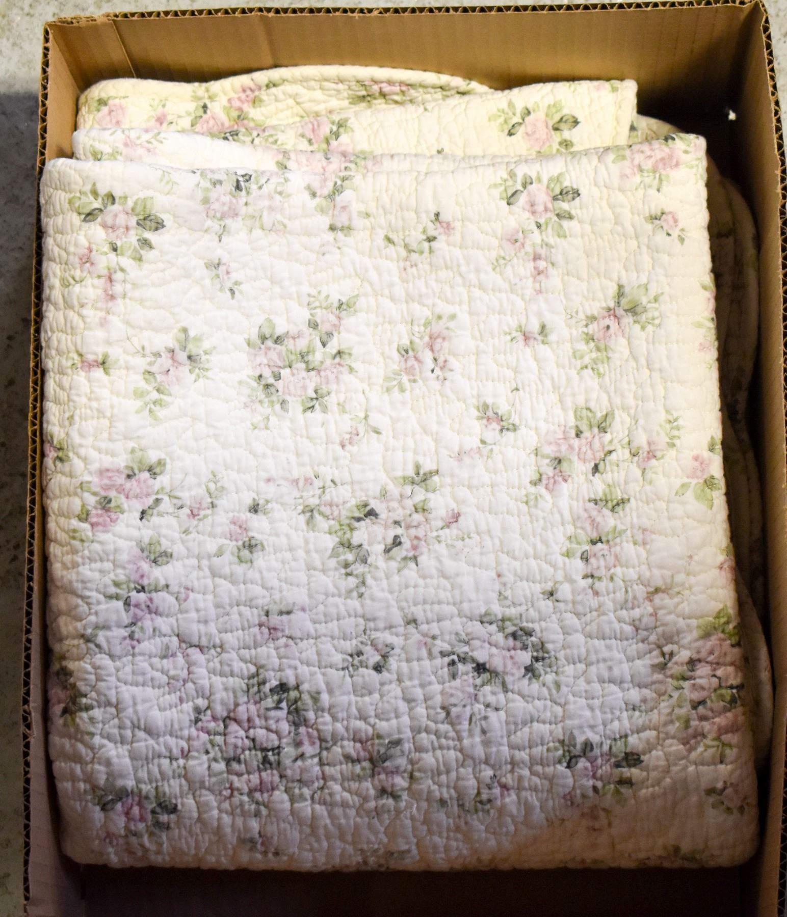 VINTAGE HANDMADE "ROSES" QUILT- 54" X 50"