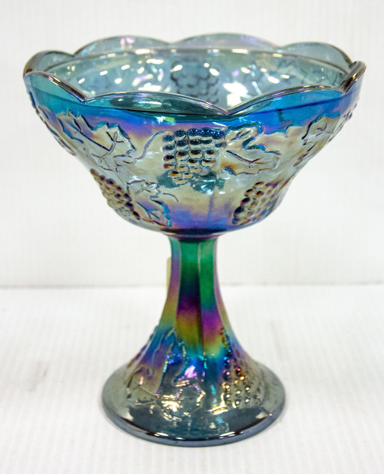 BLUE CARNIVAL COMPOTE GLASS CANDY DISH