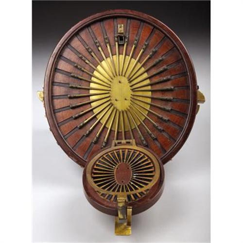 <B>VINTAGE HAT SIZER CIRCA MID 19TH CENTURY</B></I> - Mahogany and brass; Label on bottom “Samuel Clark - New York”; Brim trimmer included.<BR><BR><B>Condition:</B></I> Very good condition overall; mechanically fine.<BR><BR><b>Shipping:</b> Miscellaneous Collectibles, Larg (<a target="_blank" href="http://www.heritageauctions.com/common/shipping.php">view shipping information</a>)