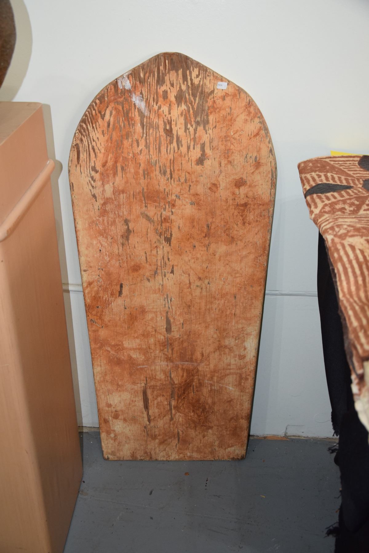 VINTAGE HAWAIIAN ALAIA SURFBOARD c1940'S (17" X 38") LATER USED AS A SHOP DISPLAY/PEG BOARD