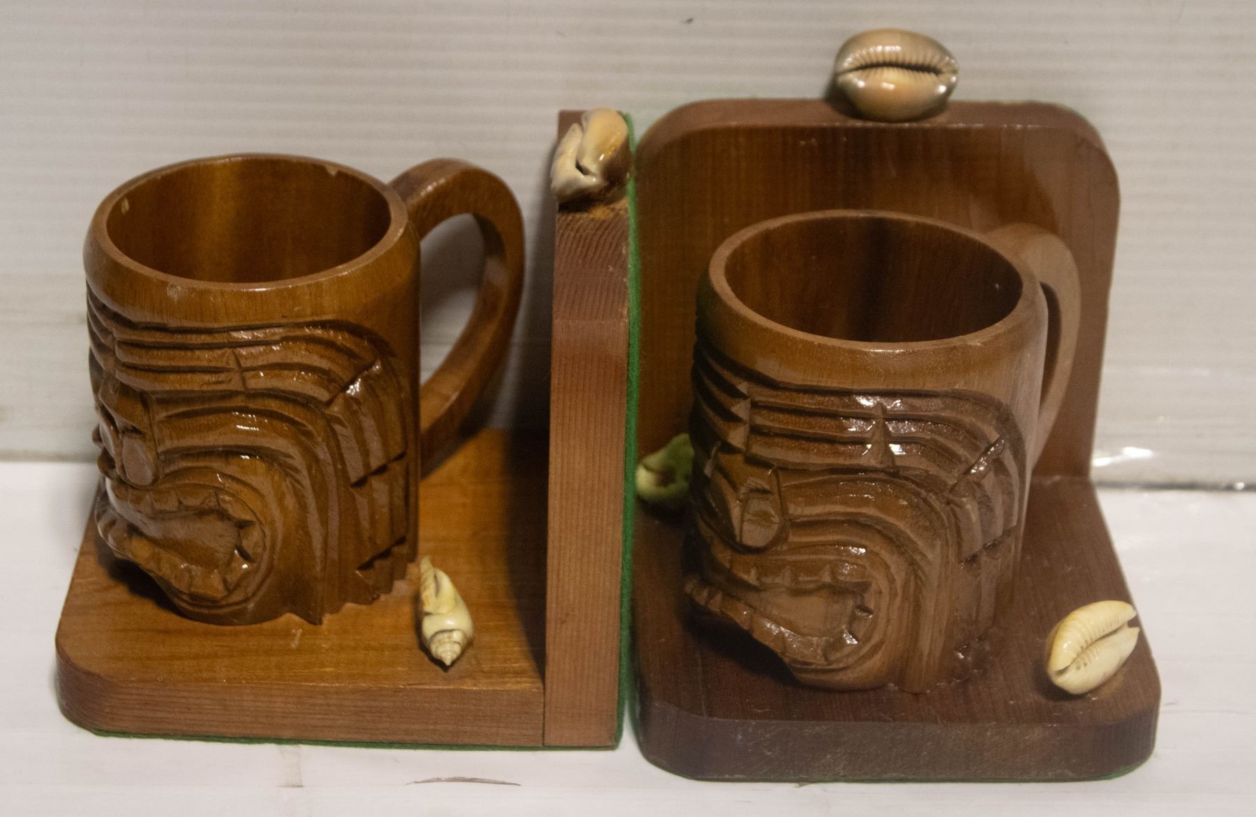 VINTAGE HAWAIIAN TIKI WOOD BOOKENDS