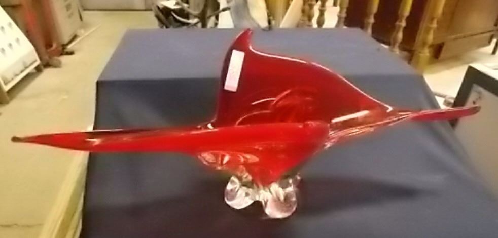 VINTAGE HEAVY RED ART GLASS CENTER PIECE BOWL NO SEAM