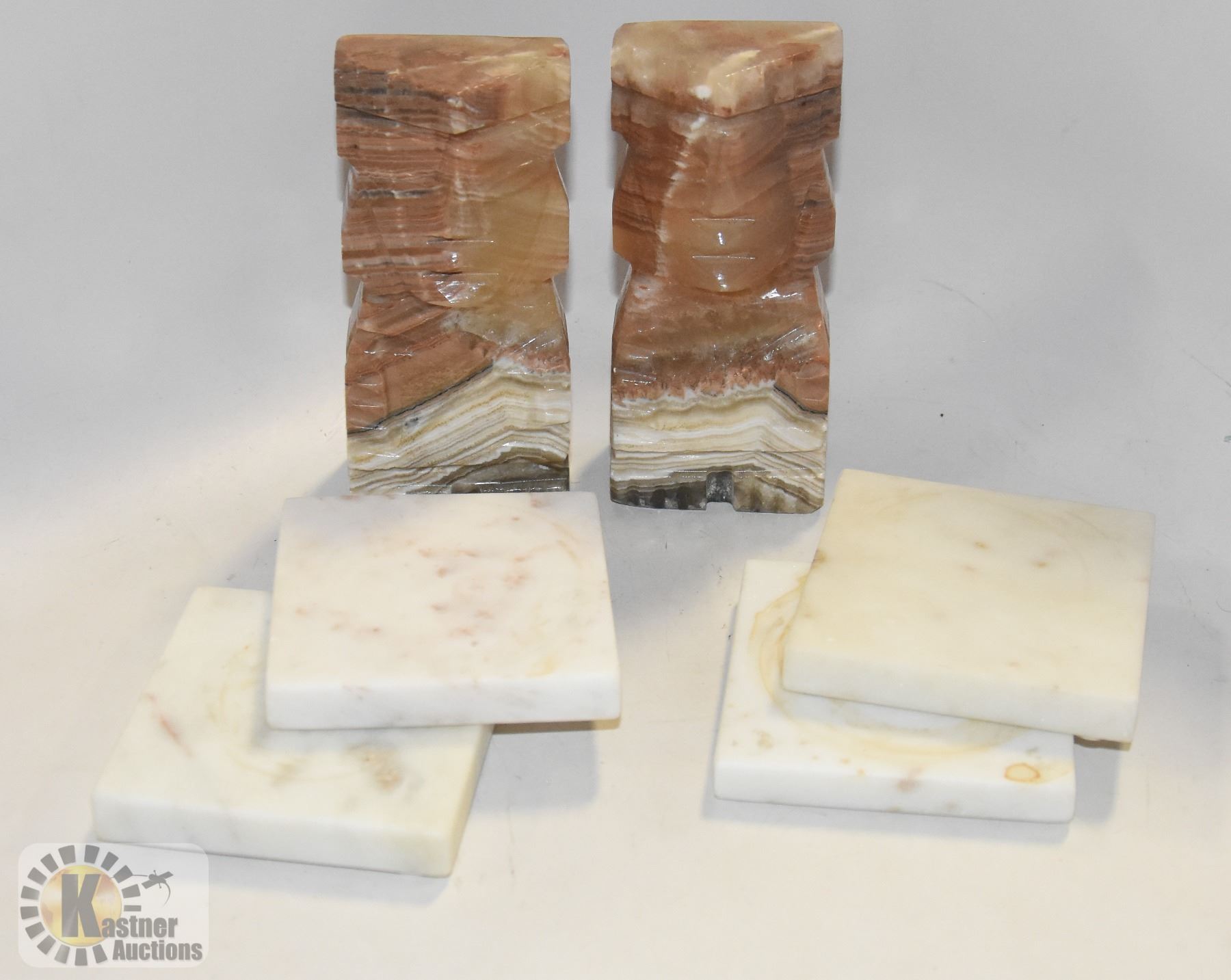 2 HEAVY STONE BOOKENDS VINTAGE. 4 MARBLE COASTERS