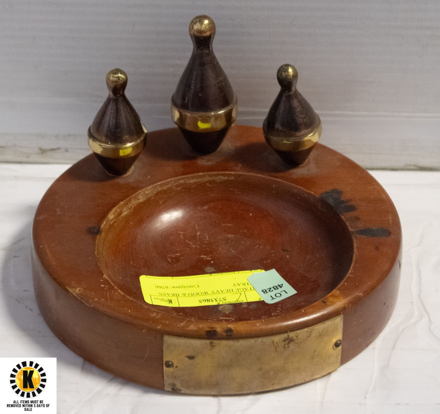 VINTAGE HEAVY WOOD & BRASS ASHTRAY