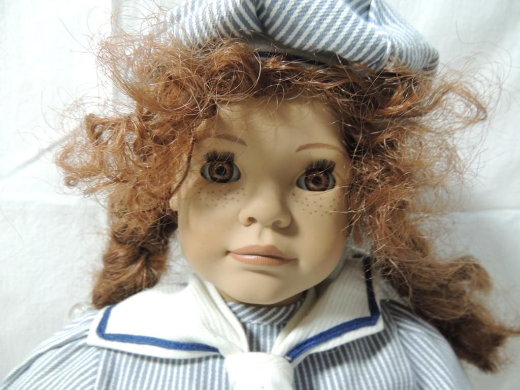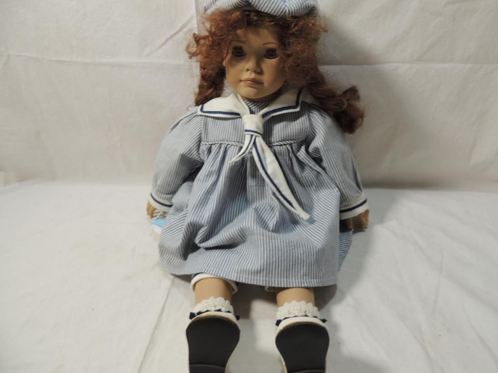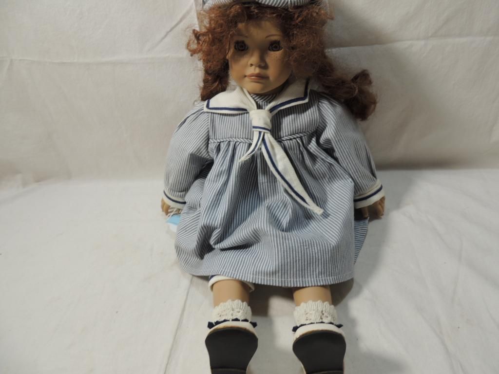 HEIDI OTT DOLL. VINTAGE DOLL, IN SAILOR THEMED OUTFIT. BROWN CURLY HAIR IN BRAIDS. AS SHOWN.SEE PHOTO FOR MORE DETAILS.
