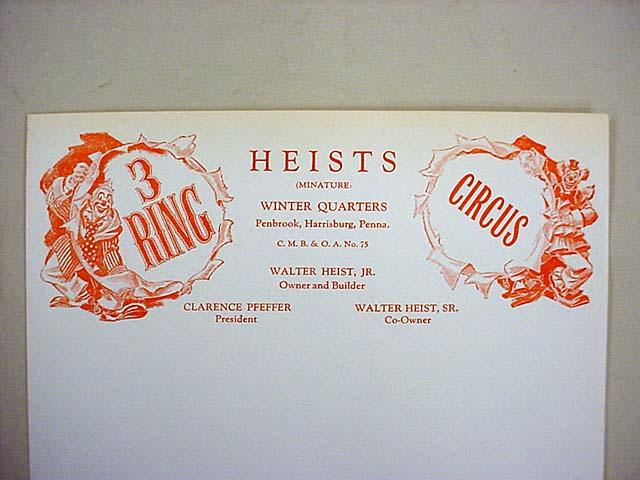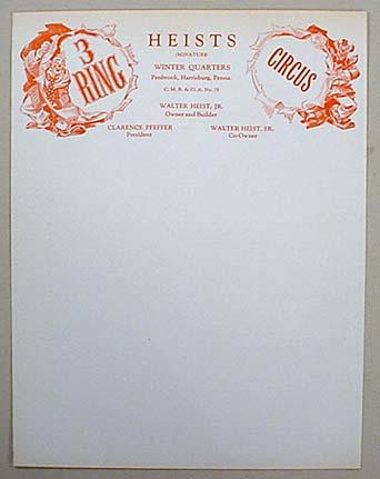 VINTAGE HEISTS 3 RING CIRCUS LETTER HEAD