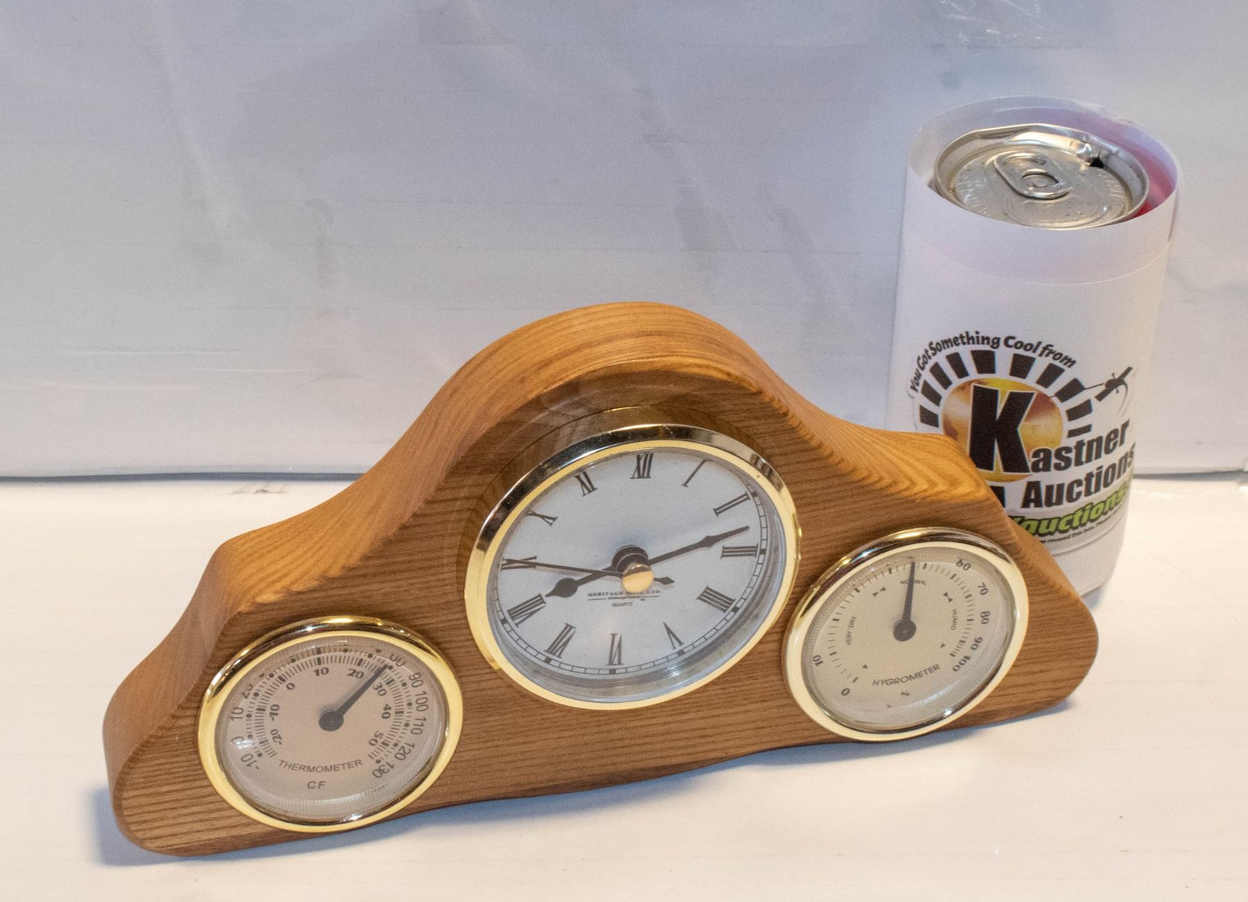 VINTAGE HERITAGE MINT WOODEN CLOCK, THERMOMETER