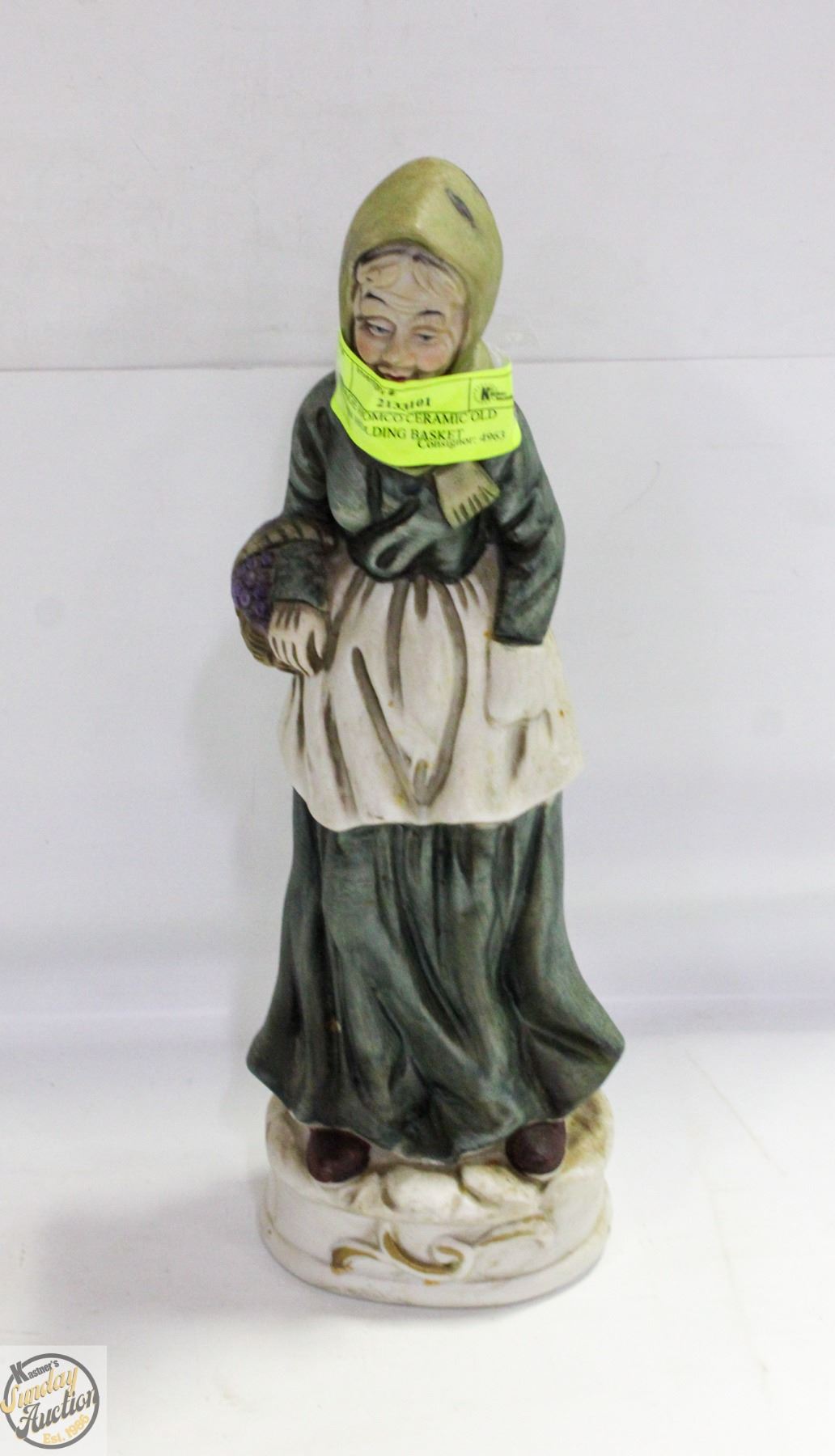 VINTAGE HOMCO CERAMIC OLD WOMAN HOLDING BASKET