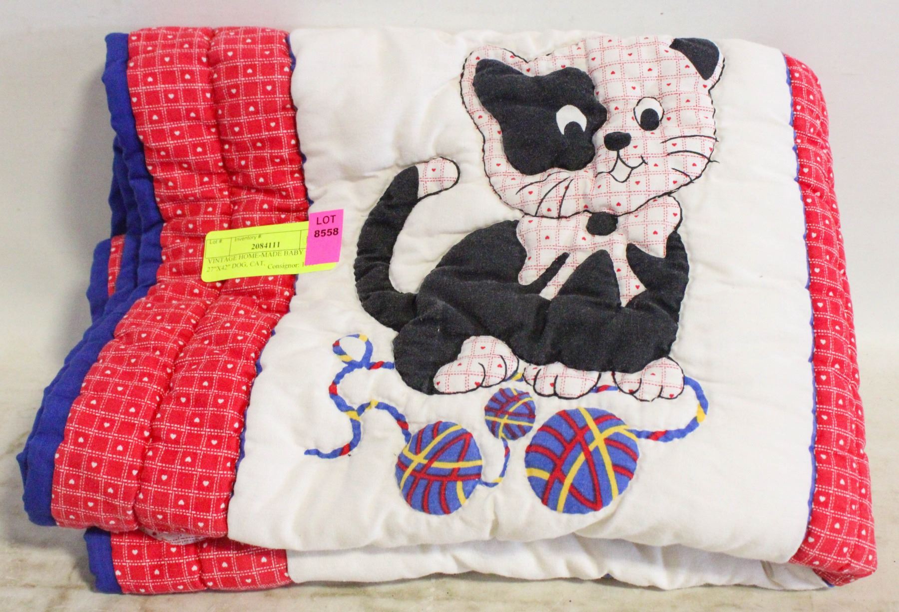 VINTAGE HOME-MADE BABY QUILT 27"X42" DOG, CAT,