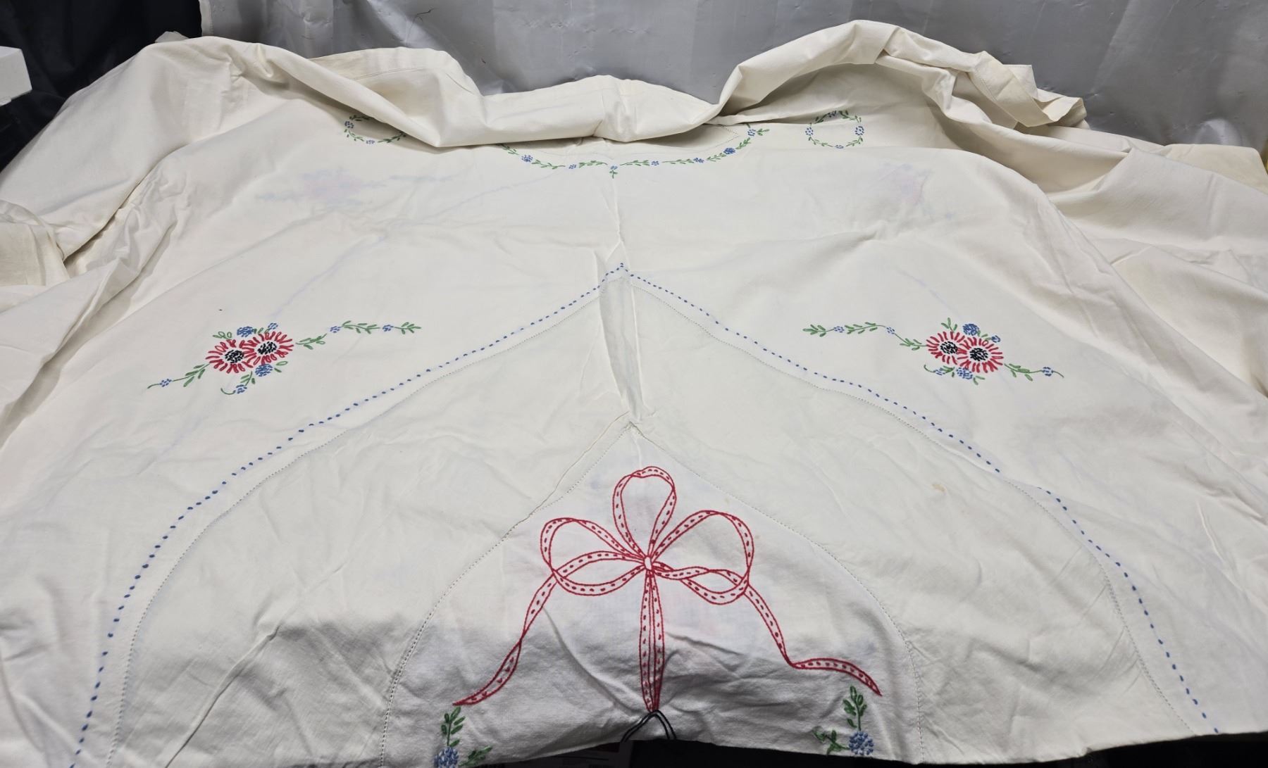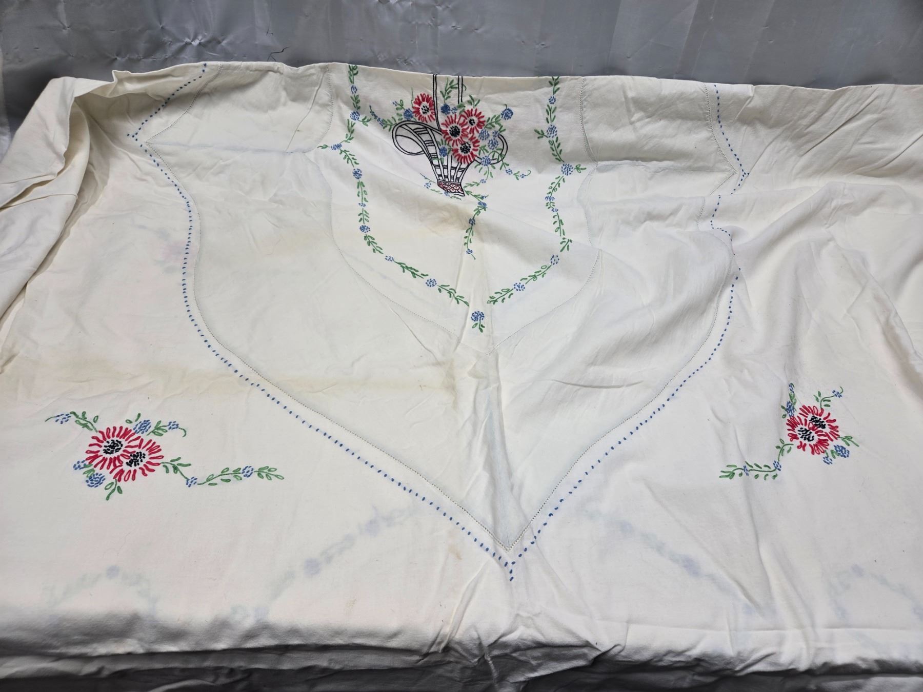VINTAGE HOMEMADE TABLECLOTH. 86" X 72"
