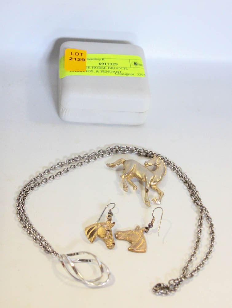 VINTAGE HORSE BROOCH, EARRINGS, & PENDANT