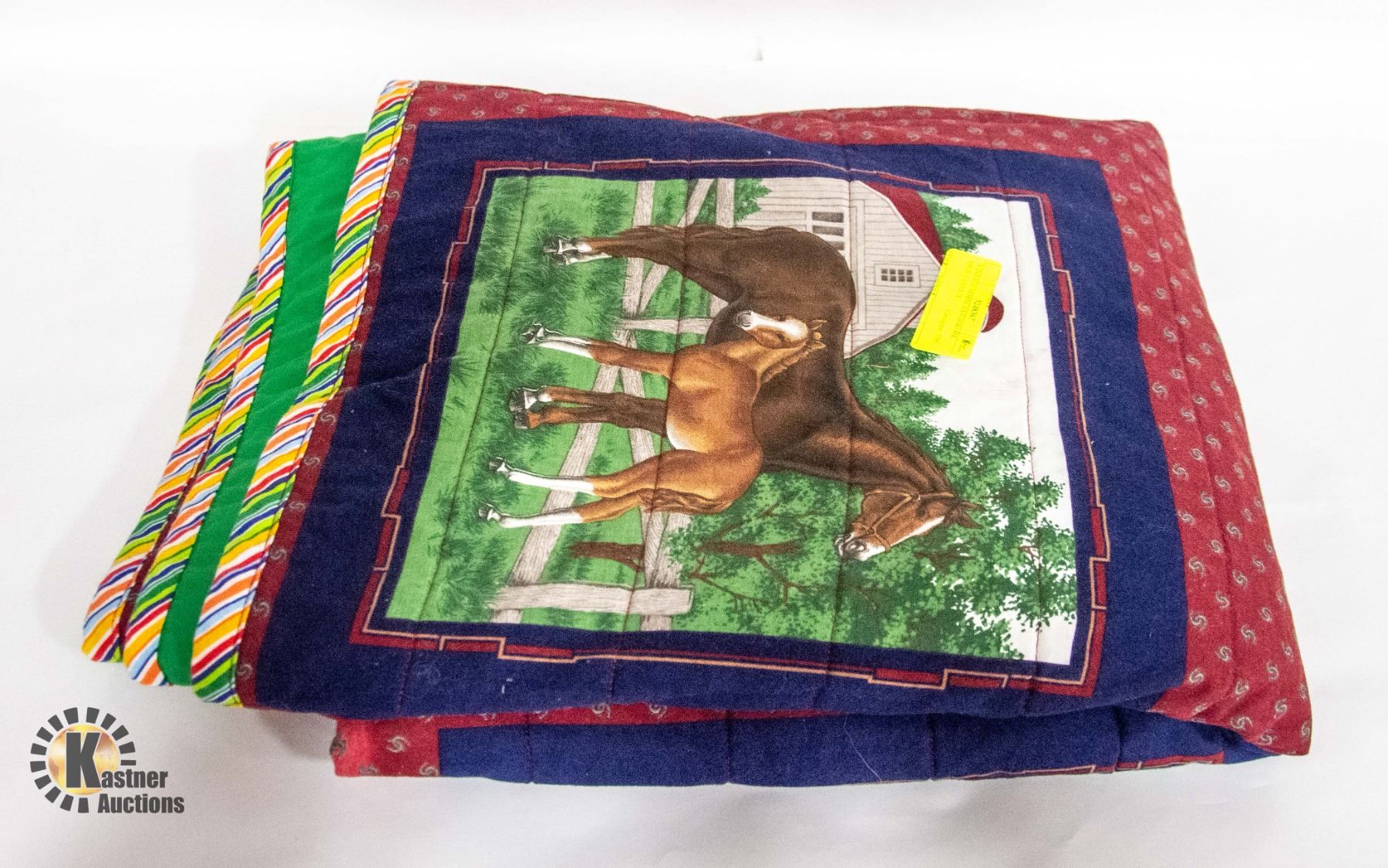 VINTAGE HORSE PATCHWORK QUILT-ESTATE